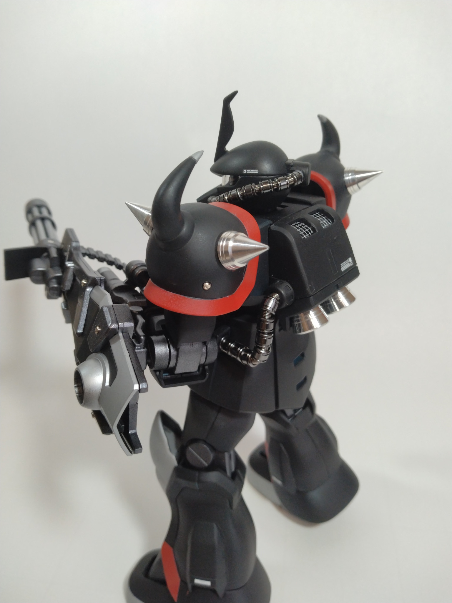 結果には大満足。ですが、諸々簡単ではなかった。特に、スジボリですね。本当はヘルメットにもスジボリを入れたかったのですが、どうやったら曲面に入れらるのでしょう??グニャグニャになってしまい無理!!今回は諦めることに。スジボリ自体も予定の1/10しかしなかった。あとは、下半身の赤が足りなくて、全体的な配色のバランスが悪い。腰回りのどこかを赤くするか、太腿に赤いラインデカールを巻けばよかったかな。そして、初期投資できるお金にも限りがあるので今回は缶スプレーでした。次はエアブラシも導入したい。やってみて初めて気づきましたが、ポージングや撮影も難しいんですね。かっこよく立たせることすらできない。何もかも勉強です。さらに言うと、改造なんて手は届かないし、必要も感じないと思っていたのですが、出来上がったのを見て、首回りと腿あたりの形状にちょっと不満が・・・こうやって沼っていくのでしょうか。
