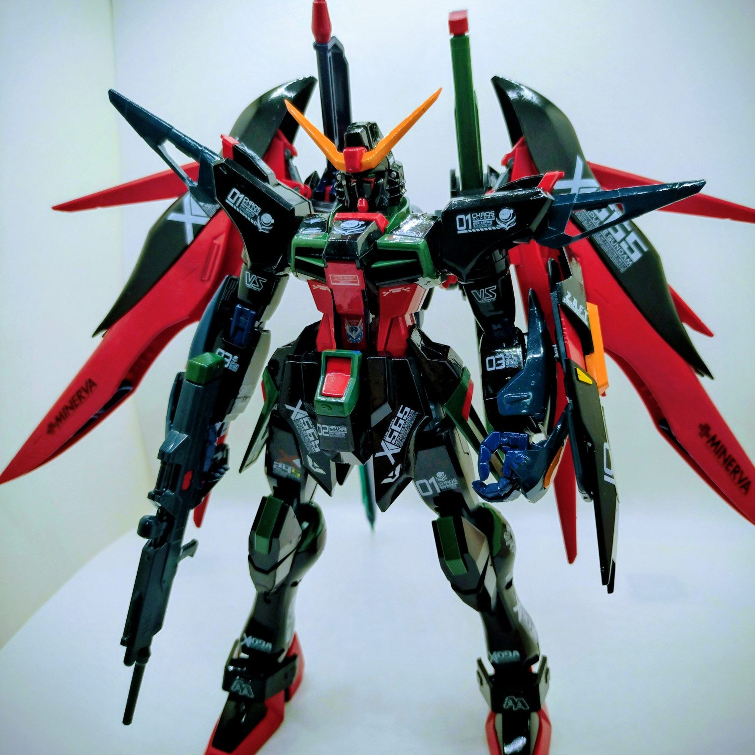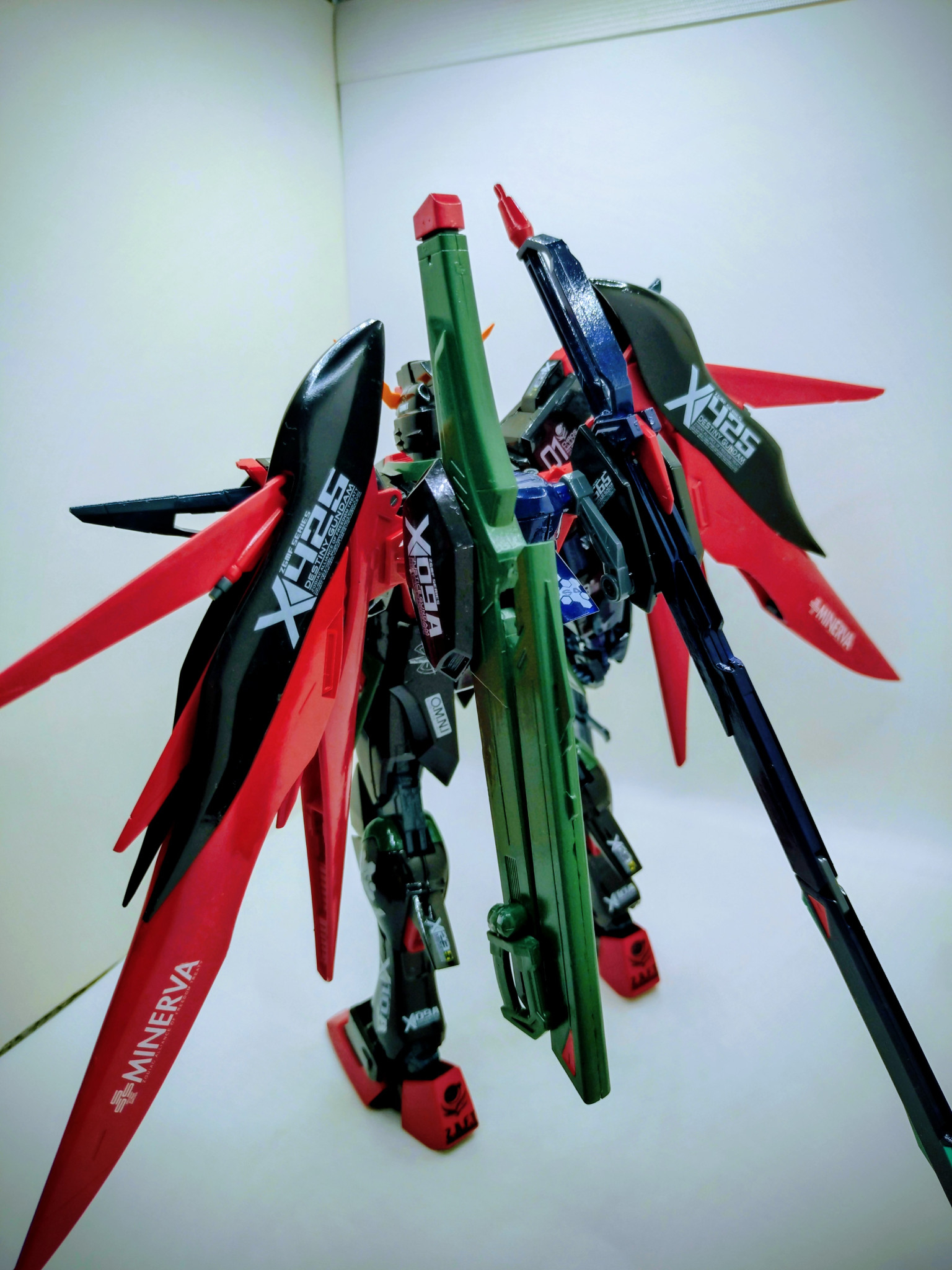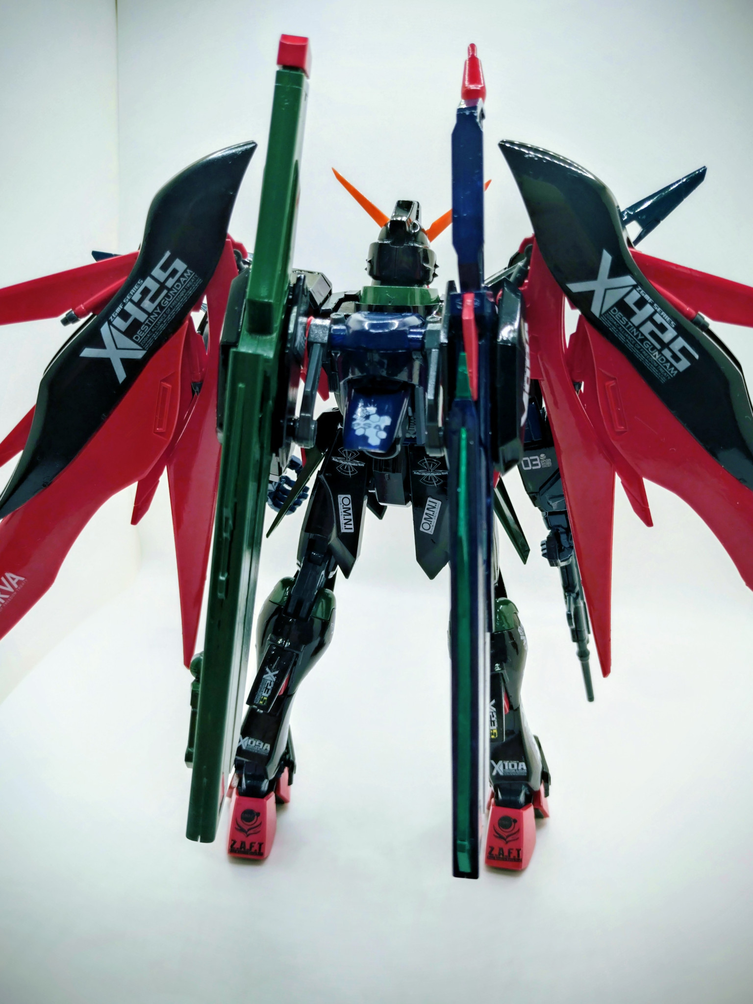 中級ワゴン MG 2026.04/05更新 黒いデスティニー 144 59 いいねしたモデラー(59) 1 0 作品を共有 デスティニーのブラックバージョン。 デスティニーをブラックメインに。他にグリーン、レッド、ブルー、オレンジなどを脇役カラーリング。まぁ、写真の撮り方や明るさで、ブラックが引き立っていませんが。相変わらず、デカールは感覚で(笑)股関節がゆるゆる?で、なかなか自立しないので、バックのソード装備を開いて、後ろの支えにしました。仕上げはトップコートの光沢で。こんな感じになりましたが、最後まで見て頂いて、ありがとうございました😆。 コメント コメントをして応援しよう コメントにはログインが必要です T-Non 1時間前 黒いけど、緑や赤、青もあって(デカール含め)、レーシングカー🏁 みたいで好きです😍 モリスキー垂涎のボリュームある作品、たまらんです👍️👍️👍️ 中級ワゴン もう50代半ばの中年オッサンですが、ガンプラ作りにハマってます。 自分好き勝手に塗装して、こんなガンダムがあったら良いな〜って感じの、自分だけのオリジナルガンダムを作るのが好きです。 エアブラシを使いたいですが、環境が無いので、筆塗り塗装です。 万人受けしない、クセが強いカラーコーディネートとレベル低い塗装技術ですが、楽しくやってます。 中級ワゴンさんがお薦めする作品 ガンダムTR−1ヘイズル改、フルドド装備 9 青いヘイズル2号機、アーリータイプ ヘイズル2号機、アーリータイプのブルーカラーリング。 9 白いソードインパルス ソードインパルスを白をメインに仕上げてみました。 9 赤いヘイズル ヘイズル改をレッドをメインに塗装して製作。 8 ジム・ドミナンス(フィリップ・ヒューズ機) ジム・ドミナンスです。 2作目になりました。 今回はブラック… 中級ワゴンさんのページ この作品をお薦め作品に設定する Please login to update your profile! Please login to update your profile! Please login to update your profile! Please login to update your profile!