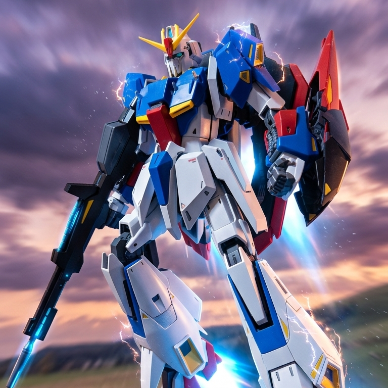 元は表題のままのver.kaですが、geminiに「カッコよくして」と入れただけでなんか右足の角度が変わってスラスターのエフェクトまで吹かしてくれました。なんか仕上がりも超合金魂っぽくなってAIスゲェ。