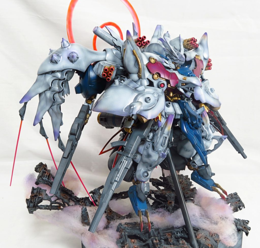 1/100グシオンリベイクをベースにSDネオジオングやSDナイチンゲール、SDクシャトリアをミキシングしました。グシオンはゴツイほうがカッコいいだろうなあと思い作製に至りまた。