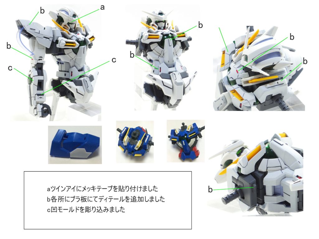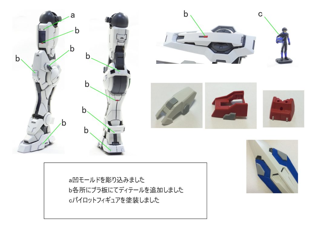 ガンダム エクシアのカラーリングを白色系でまとめて製作してみました。 各所にプラ板を使用してディテールを追加しました。 一部にレッドポイントを追加しアクセントにしました。