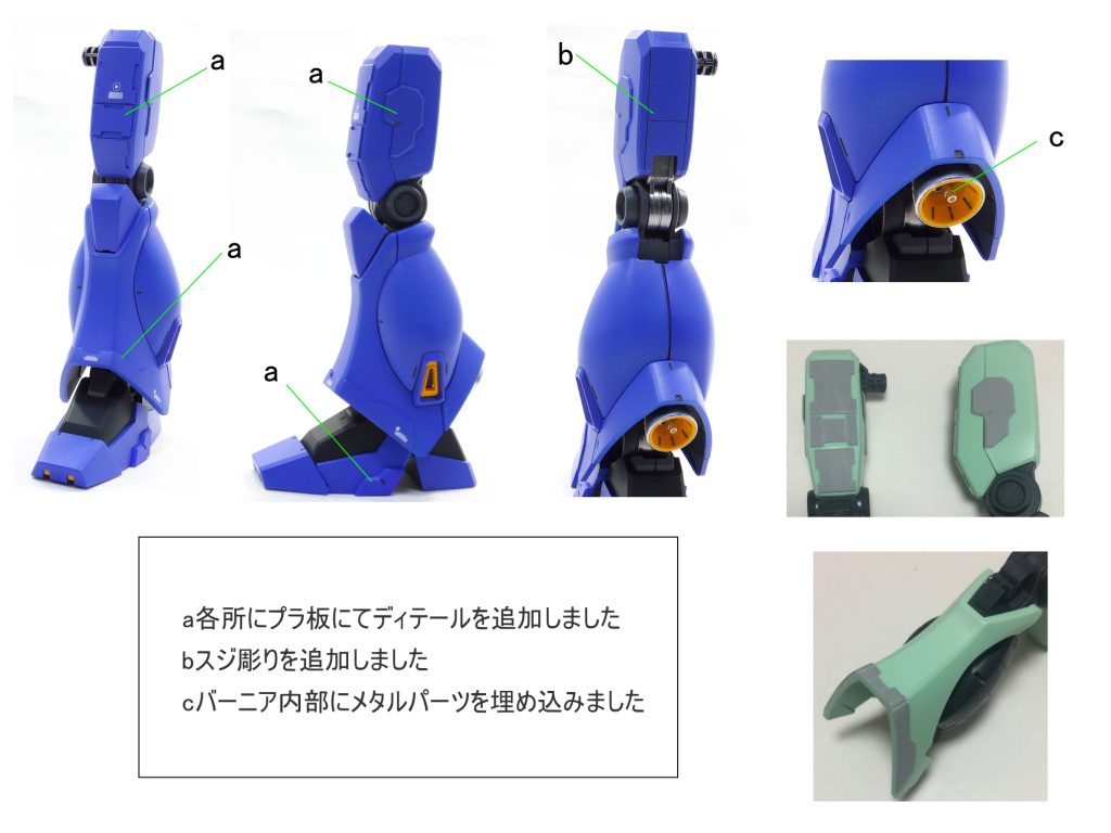 各所にスジボリにて情報量を追加して塗分け 太ももをパテにて幅…