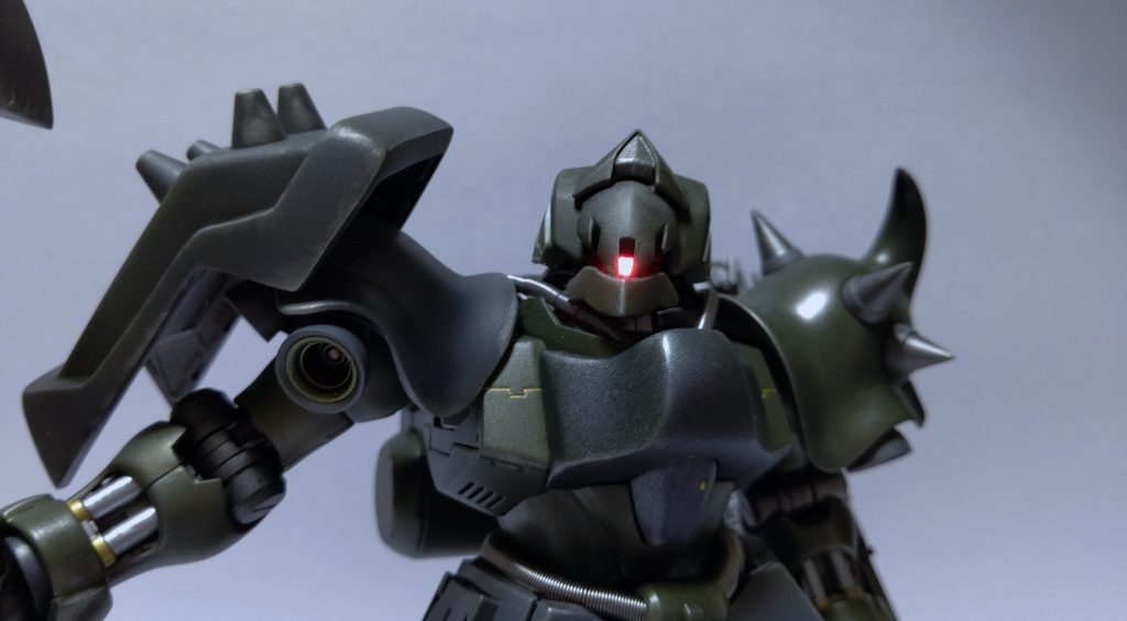 ガンプラ用LEDライトを使用。鉄仮面のスリットから漏れるライトが凶悪さを演出。