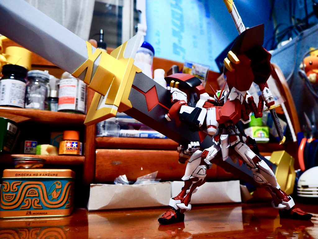 というわけでMGガンダムアストレイレッドフレーム&パワードレッド+150ガーベラストレート(全長約1500mm)です。