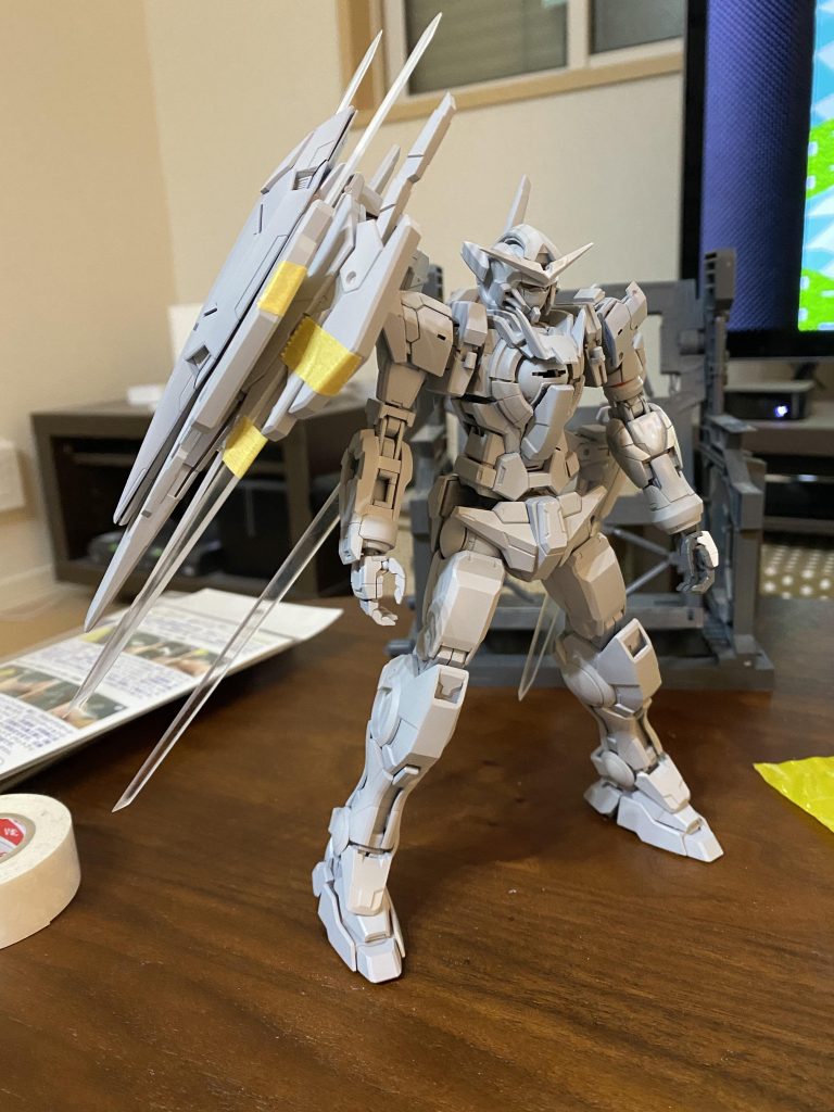 前回はRGベースの1/144サイズでしたが、今回はMGエクシアをベースに1/100で製作してみました。