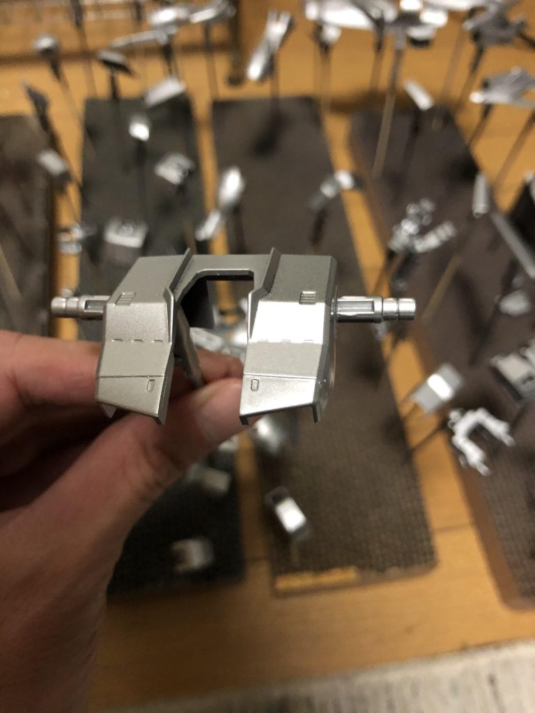 関節とかのシルバーと艶消しブラック以外は、塗装後とクリアー光沢後にコンパウンドで磨いてます。鏡面になるくらいツヤッツヤのプラモを作ってる人の凄さがわかりました‥