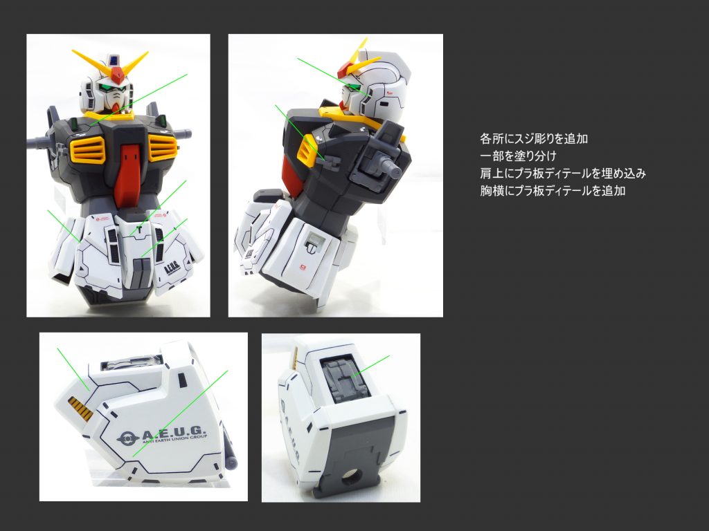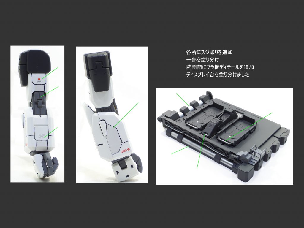 MG ガンダムマークII ver2.0の全体にスジ彫りを追加し ディテールを塗り分けました。適所にプラ板より製作した ディテールを埋め込みました。