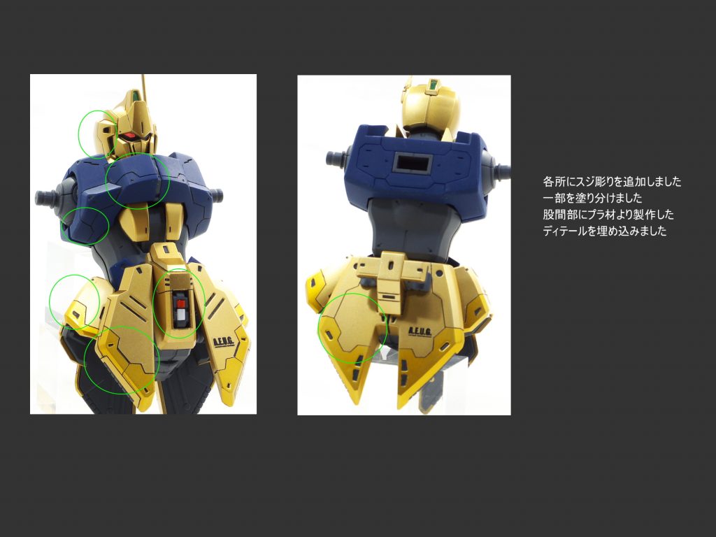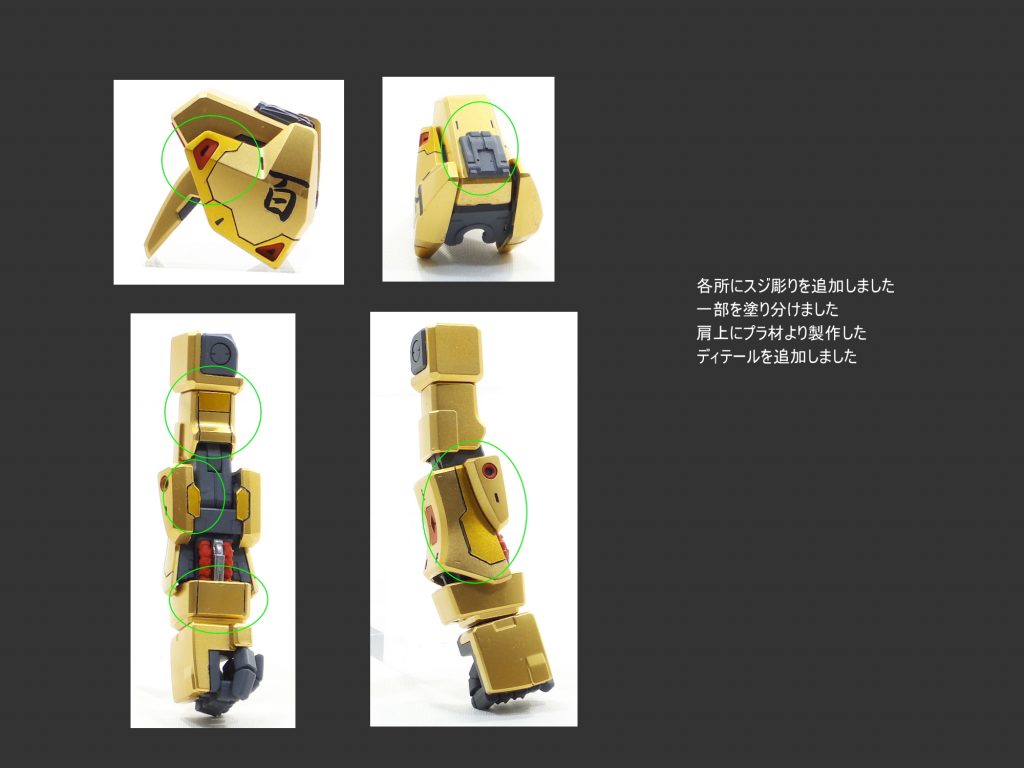MG 百式 ver.2.0を製作しました。 全体にスジ彫りを追加し一部を塗り分けました。 肩上や股間部にプラ板より製作したディテールを追加しました。