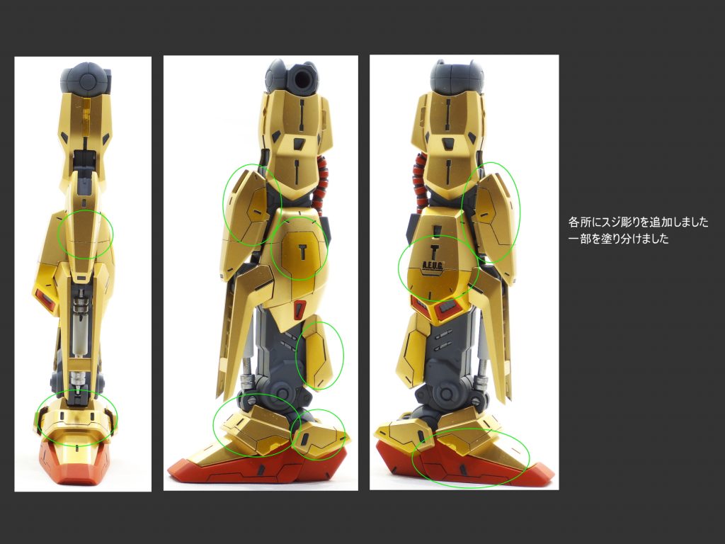 太ももをプラ板にて1mm幅増ししました。 各所にスジ彫りの追…