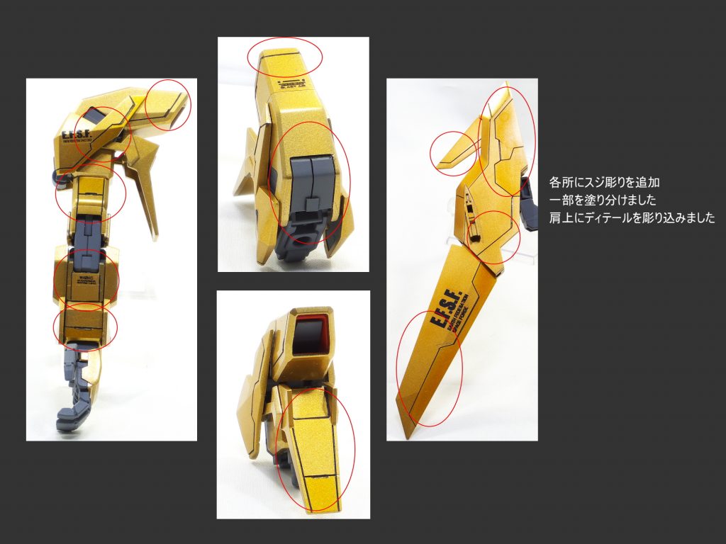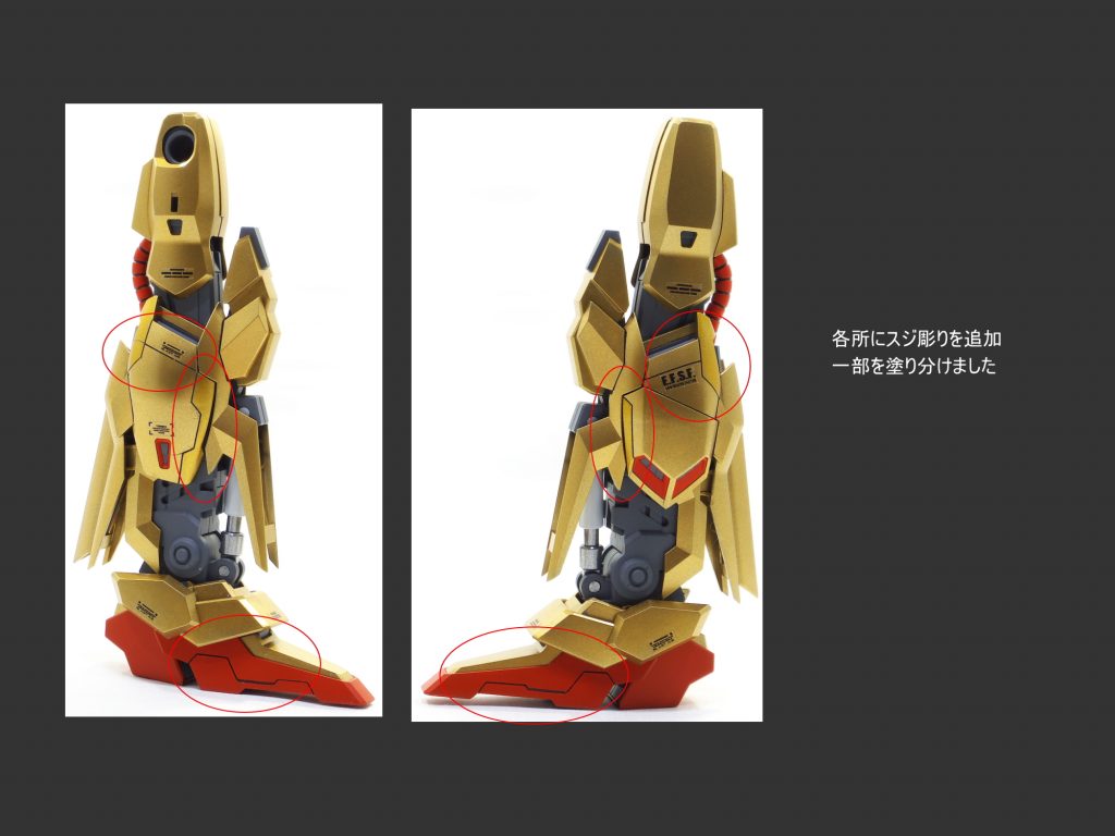 本体の各所のプロポーションを変更しました。 全体的にスジ彫り…