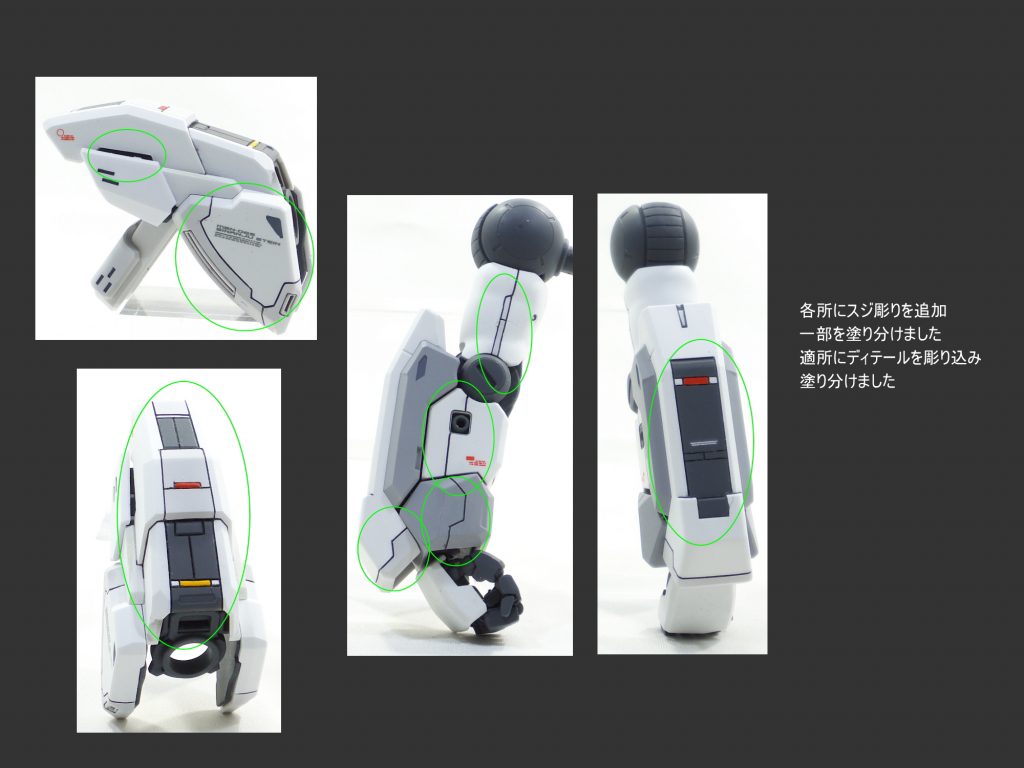 全体的にスジ彫りの追加やディテール等を彫り込み ディテールを追加しました。 一部のディテールは塗り分けを行い仕上げました。