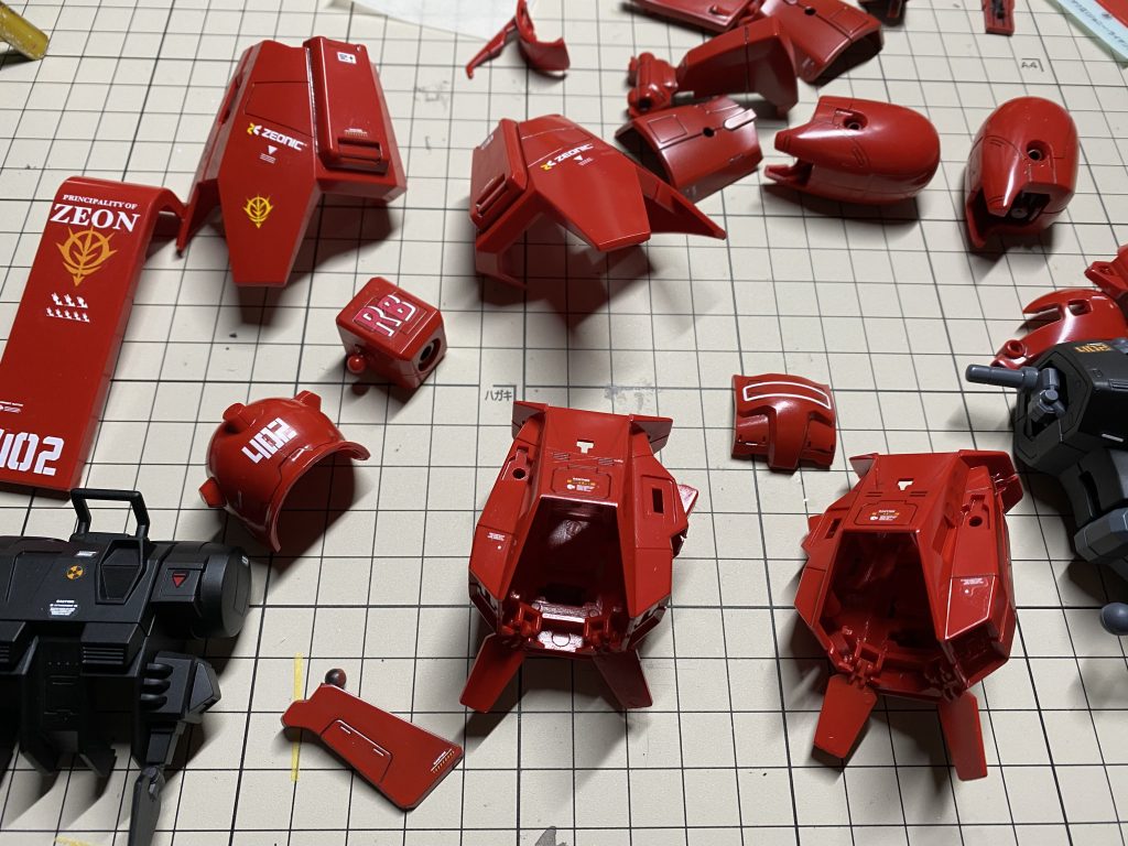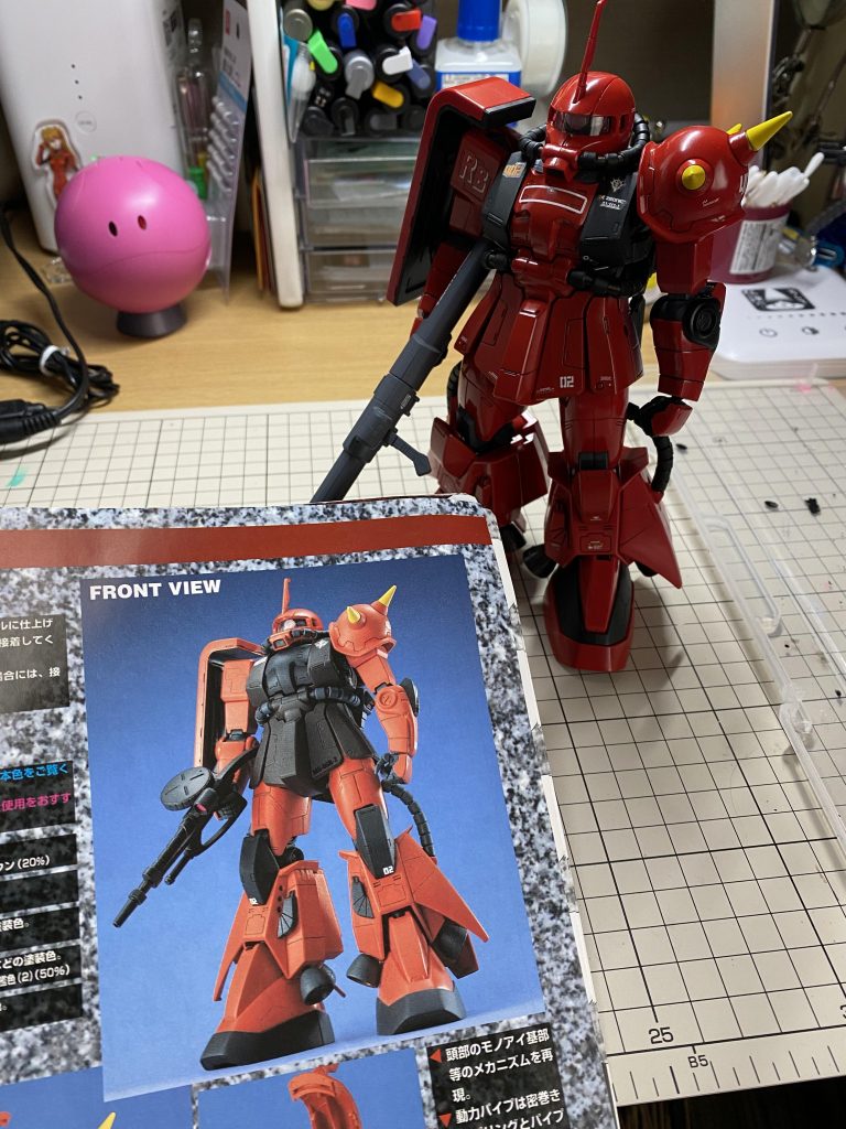 初期のMGはシャアザクや量産型ザクのランナーの関係で、シャアザクみたいな配色になってますね笑