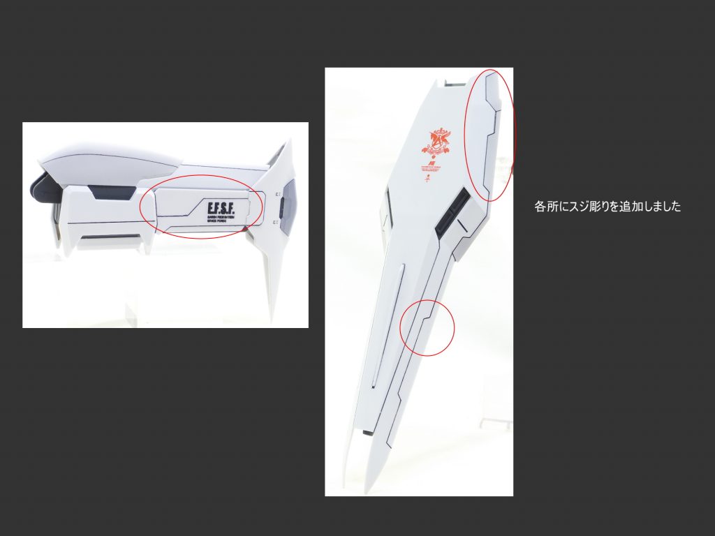 本体の各所のプロポーションを変更しました。 全体的にスジ彫り…