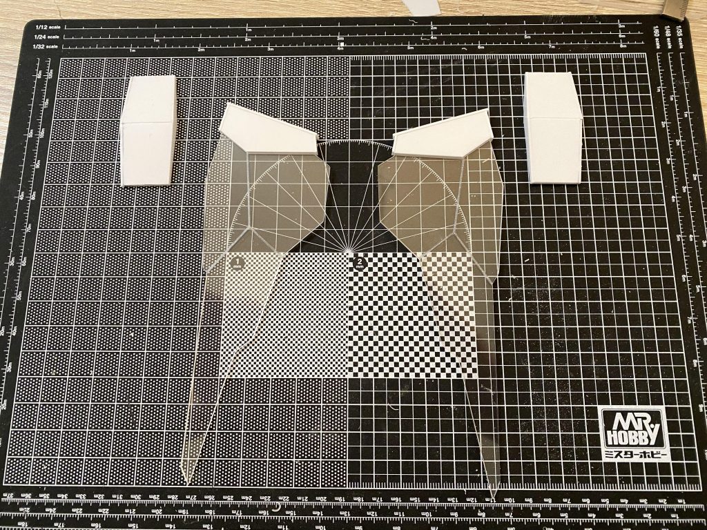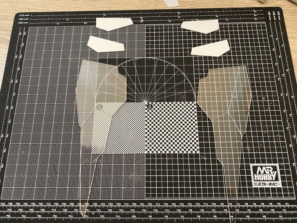 イメージ通りに作れたら、その厚紙をそのまま型紙として使ってプラ板を切り出して工作してます!