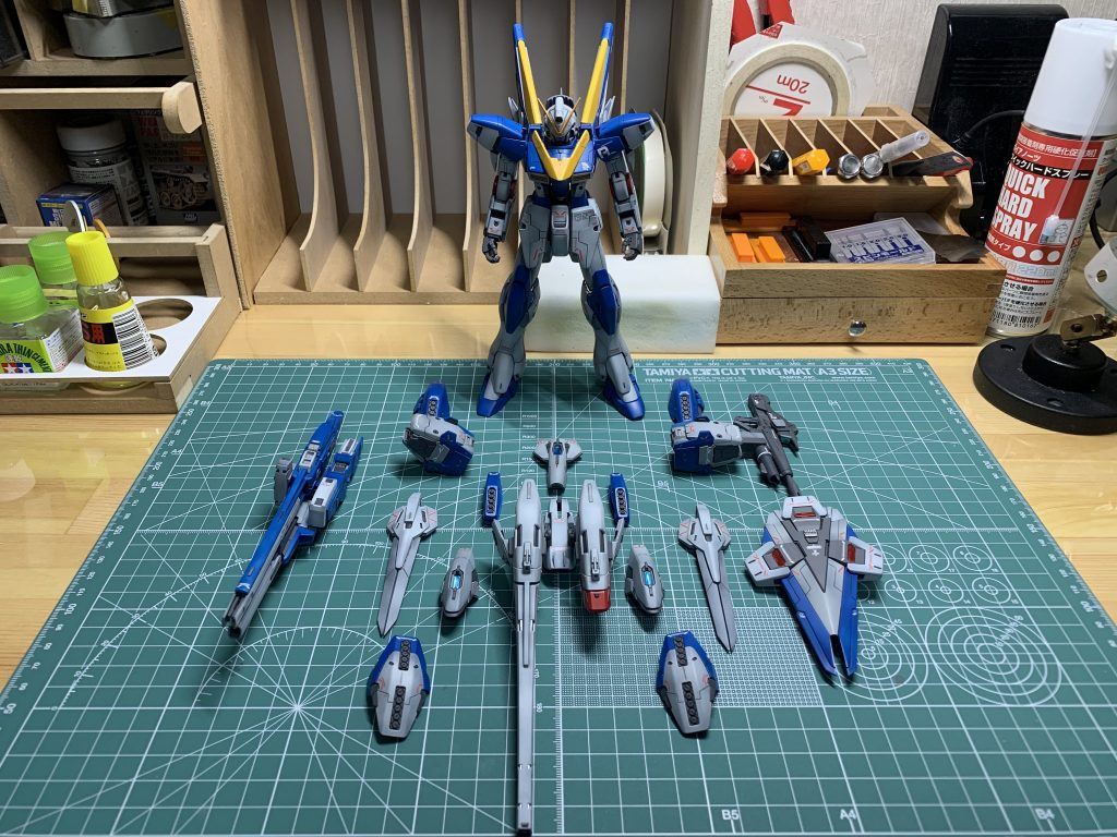 カラーリングはゴールドを無くしホワイトとブルーに変更する事でよりミリタリーチックに、よりV2と追加アーマーの一体感を高めるように意識しました。
