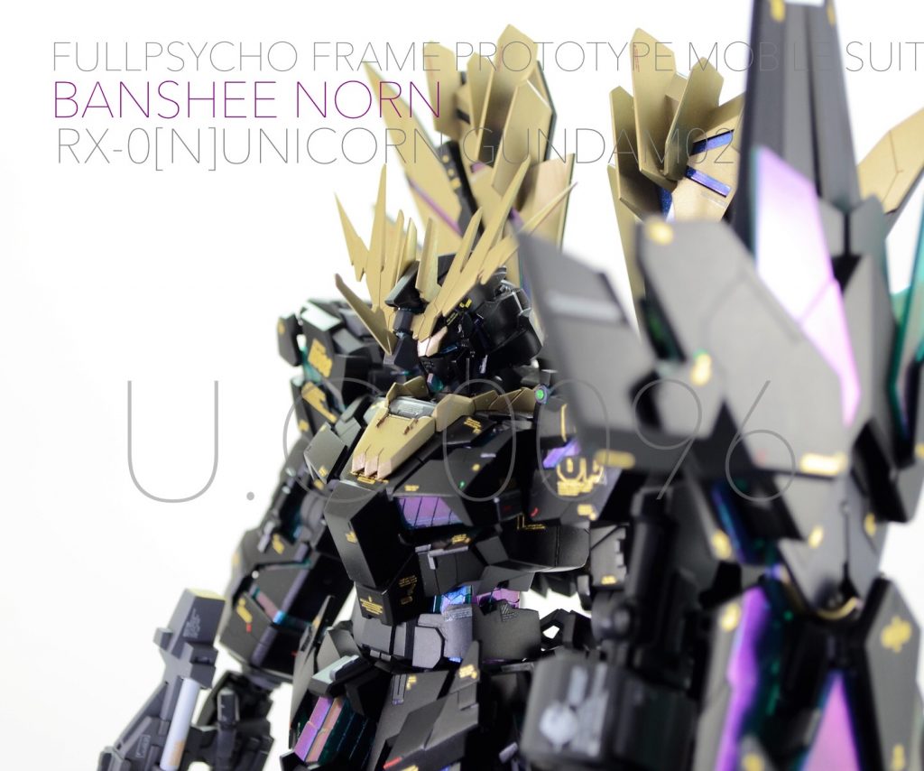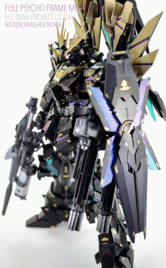 サイコフレーム等を偏光マジョーラで塗装して外装は塗り分けで表現してます!