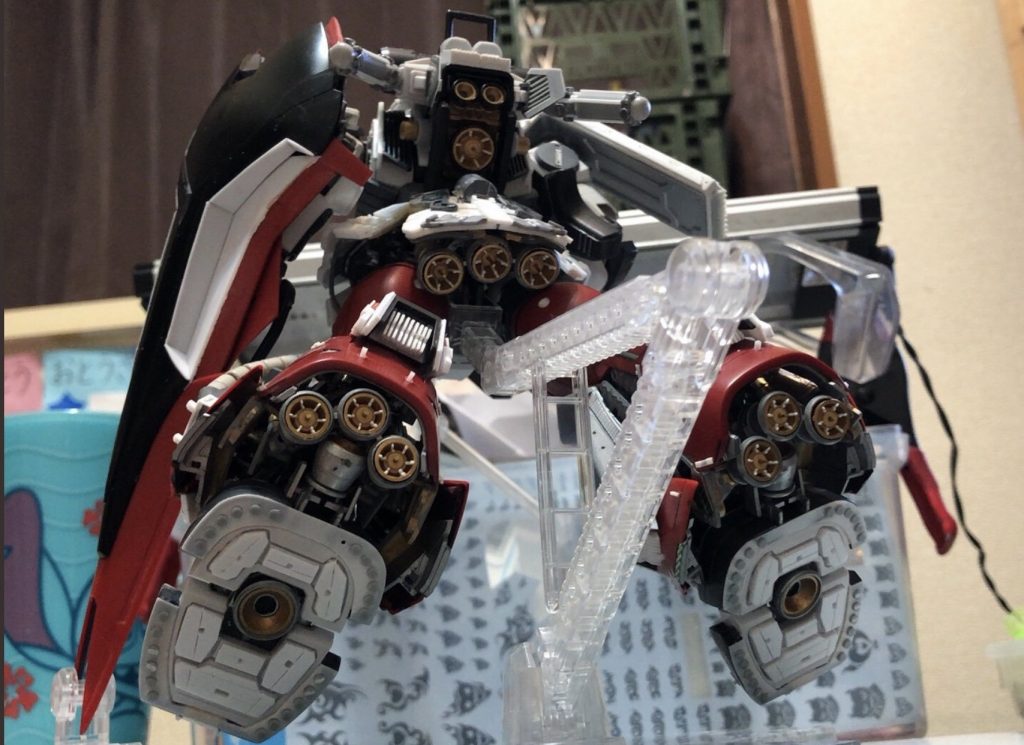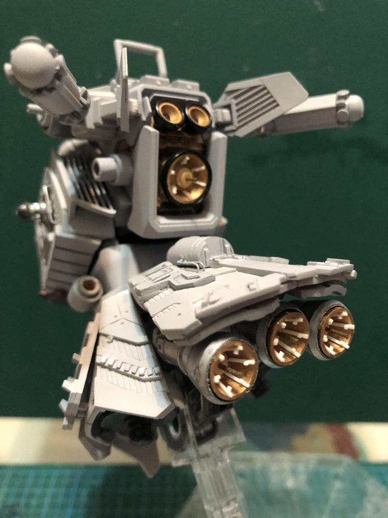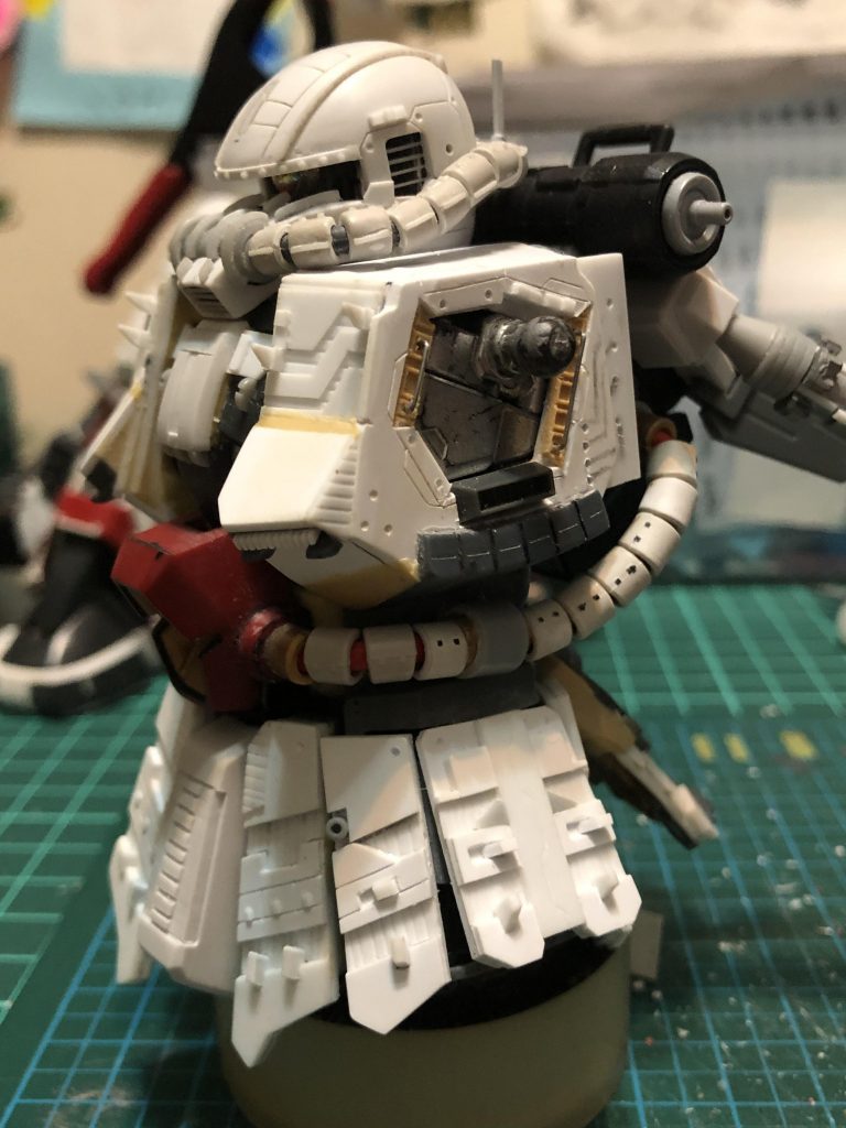 ミキシングしやすくディティールも決まりました!胸部はプラ板箱組で作ってます。お気に入りはヤッパリ腰のメガ粒子砲、たぶん1発でフレームやられます!前に作ったケンプとのバランスも考えながらまとめました!