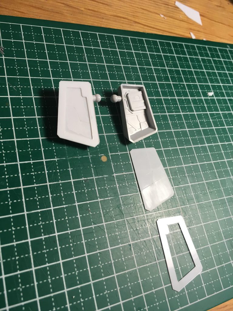 スネのセンサーは塗り分けが面倒だと感じたので切り抜いて別パーツ化、塗装後に裏側から貼り付けています。