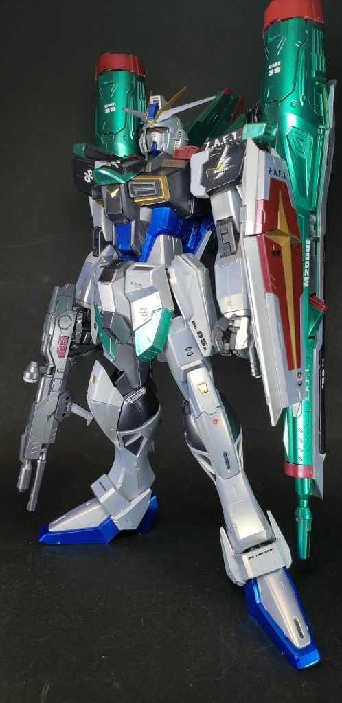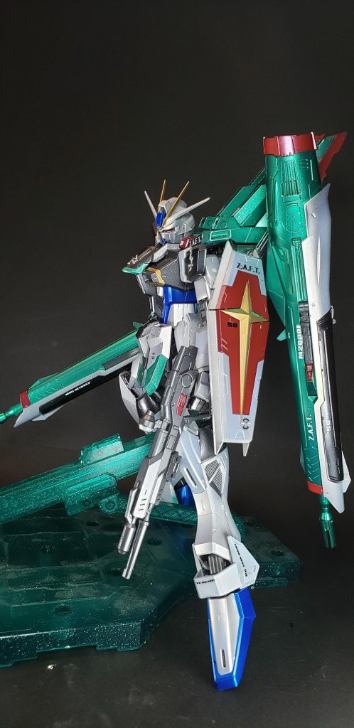インパルスガンダムはザフトによって開発された、「セカンドステージシリーズ」に位置付けられる換装機構を導入したモビルスーツ(MS)であり、デュートリオンビーム送電システムやコアスプレンダーをはじめとする各種新機軸の機能を投入し、単機で従来MS複数分の性能を発揮する事でユニウス条約の制約である「MSの保有数の制限」をクリアしたMSとなっている