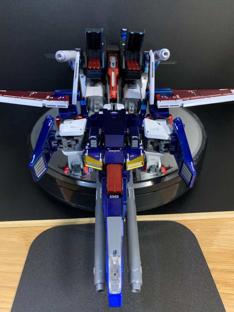 素組み6機を経てるが、あえて「こいつがおっさんの処女作」といいたい!素組みは説明書通りに作った、つまりバンダイさんがデザインしたものだが、このZZの配色は私が選んだものだからだ!(それだけっちゃ、それだけだけども!