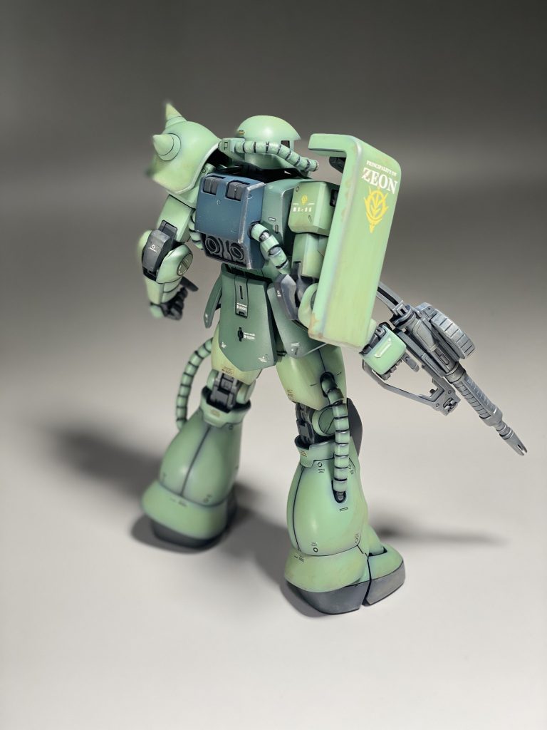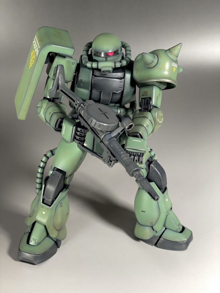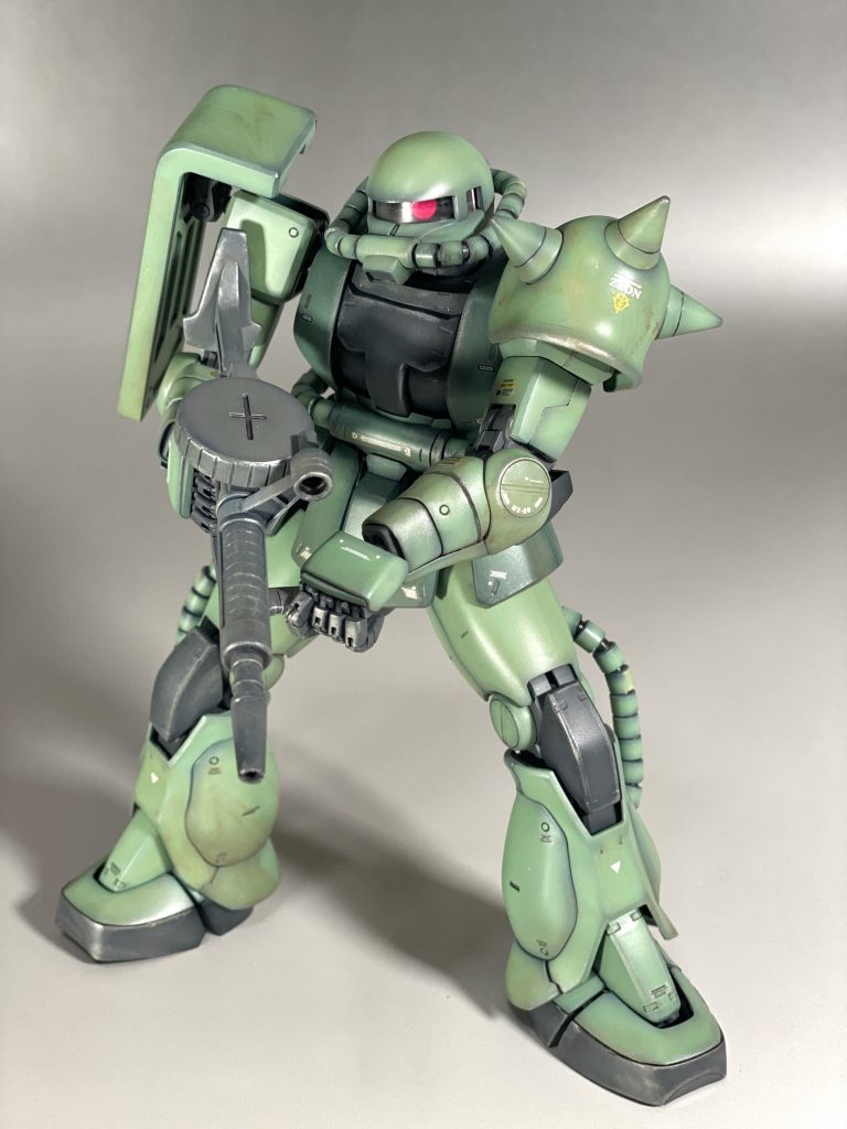 自分はあまりウェザリングもやった事が無かったのですが今回は挑戦のつもりでがんばりました。ザクはなんだか汚したくなりますよね?( ̄▽ ̄)ウェザリングカラーも、ダークブラウンとサンドカラーを合わせております。あとはタミヤのウェザリングカラーも使ってみました。