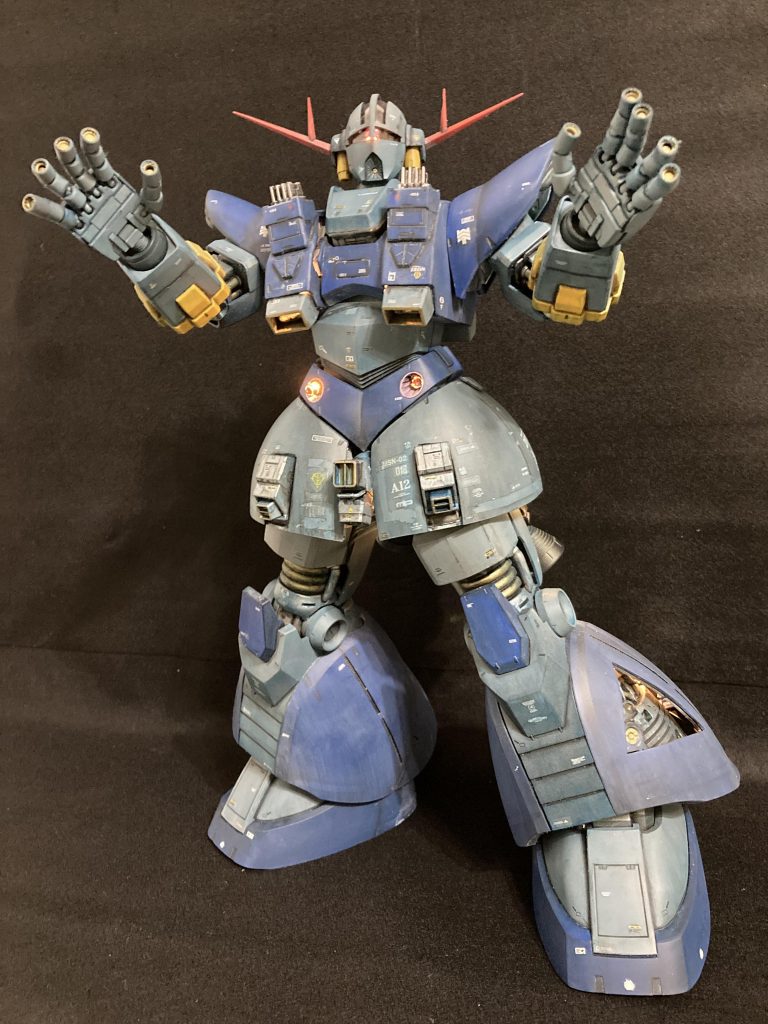ありがとうございます! 全高360mmの大きなMGです!小さめなディテールパーツを使って元々の迫力シルエットを更に強調してみました!単三電池3本も仕込んでいますのでガンプラとしては中々の重量になりました(笑)