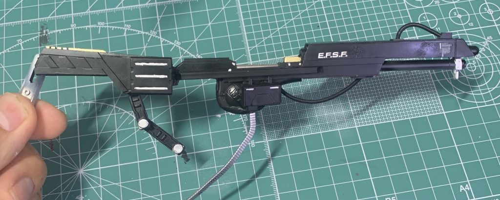 プラ板加工、スジボリを追加し、青や赤は淡く仕上げました。