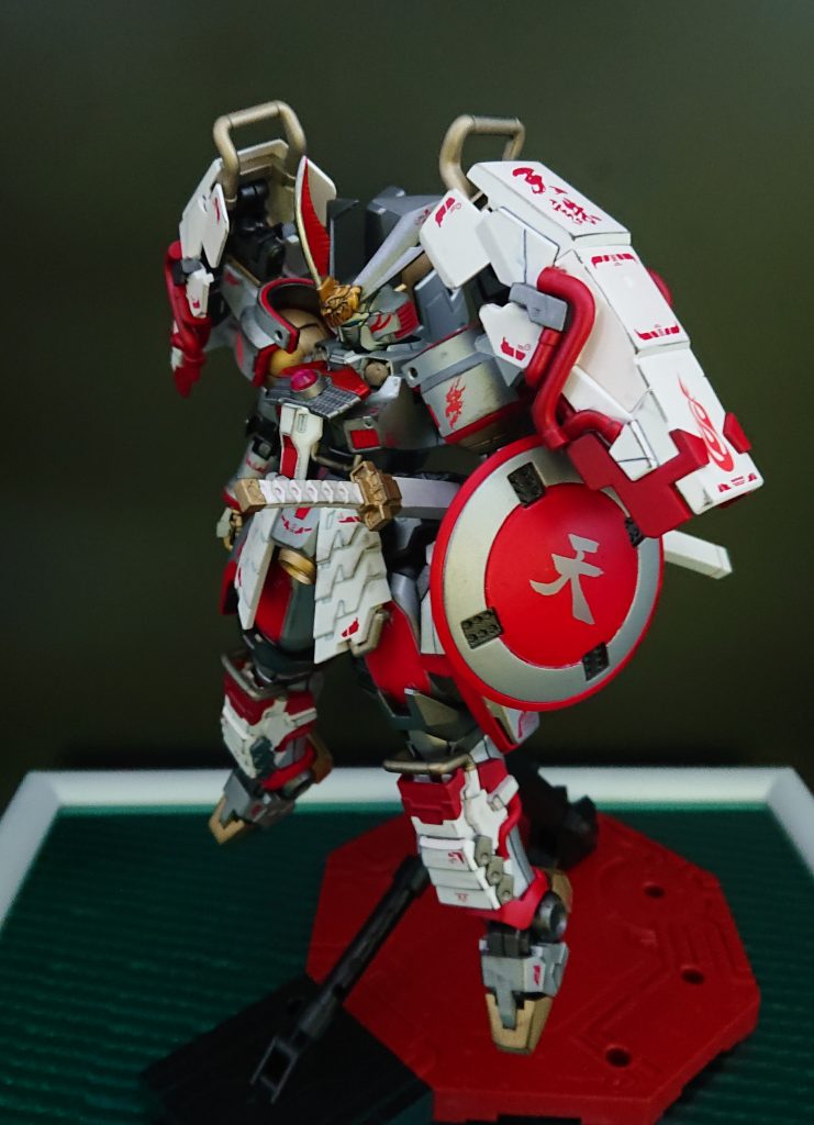 MGトールギスに、いつもの如くMG真武者頑駄無の甲冑を着せてます。兜の前立ては甘寧ケンプファーとスサノオを使用。
