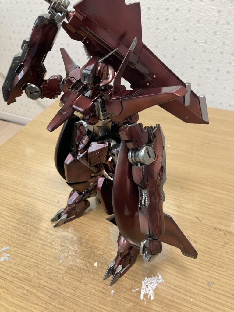 最初はアルケー通り普通の赤っぽいカラーで塗ろうと思ったのですが、メタリックの方が面白そうだと思いこの色にしました。