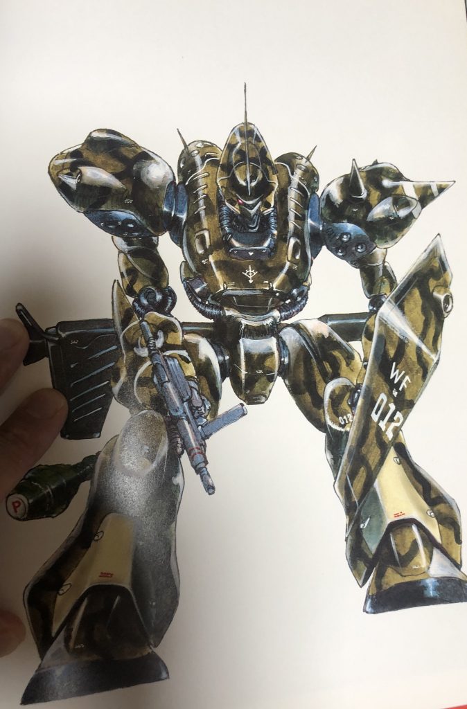 元ネタの近藤氏のイラスト。この姿勢をとりたかった。後、マシンガンがジャンクパーツに無く、ザクマシンガンになりました。