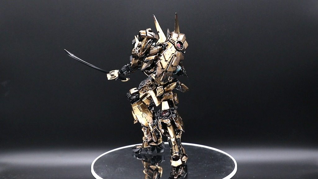 戦国アストレイ頑駄無に金箔を貼り上下を塗膜で包んでいます。作業工程はYouTubeでご覧頂けますhttps://youtu.be/uw9KBkauXBc