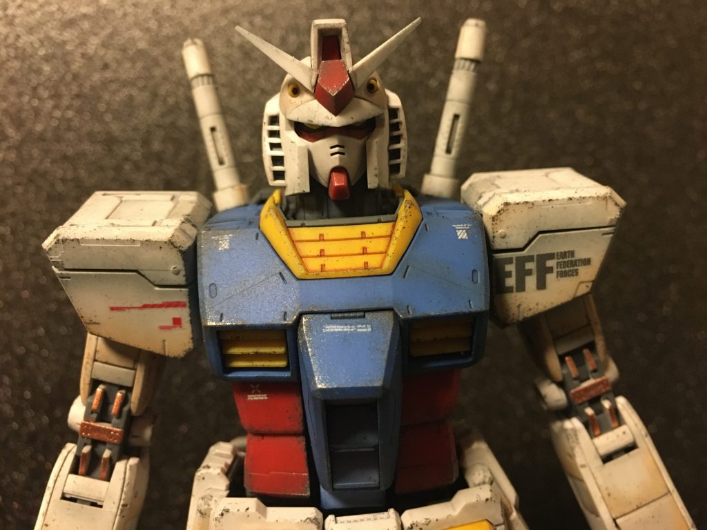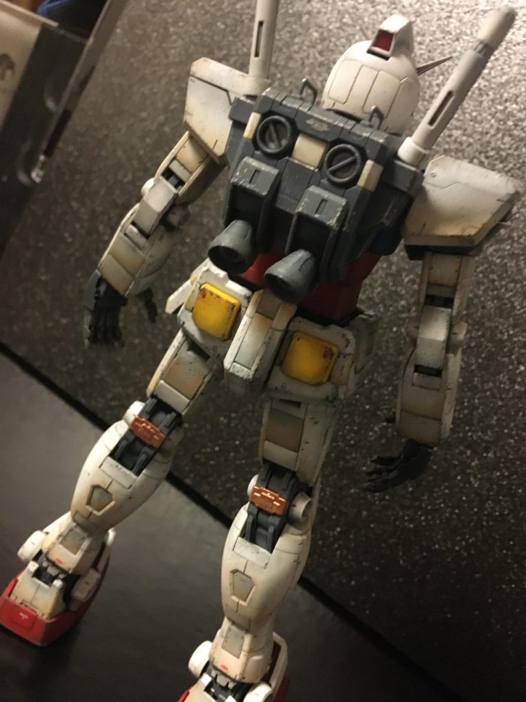 基本塗装無しの成形色仕上げ、つや消しを吹いた後にウェザリングカラーのブラックでウォッシングしてから、ウェザリングマスターを使ってグラデーションを付けて、最後にエナメルのジャーマングレーやチタンシルバーを使って汚しました