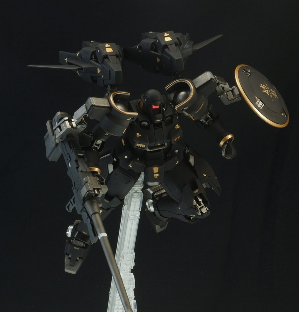唯一の設定である濃紺カラーに従いつつ、アクセントの金がコロニーの守護神たる神々しさも感じさせて最高です!