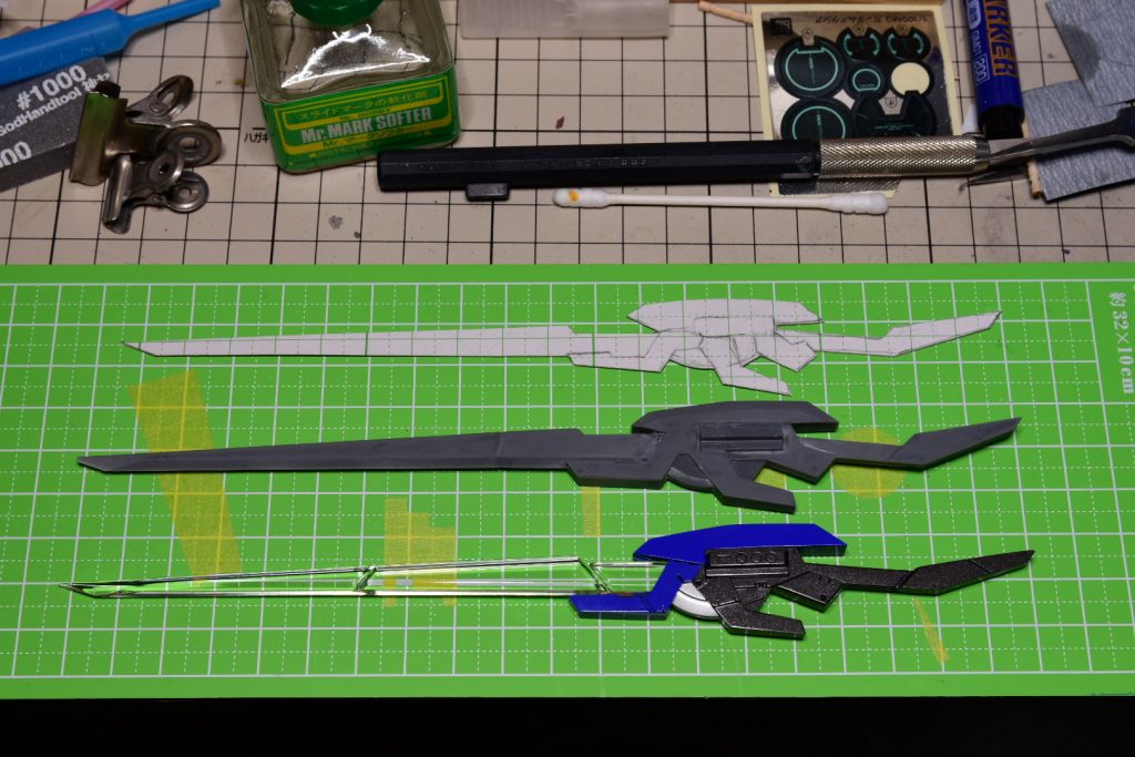 メタルビルド用に書き起こされたエクシアが個人的に一番カッコいいので、MGエクシアを元に、それに近づけるように各部を製作しました。