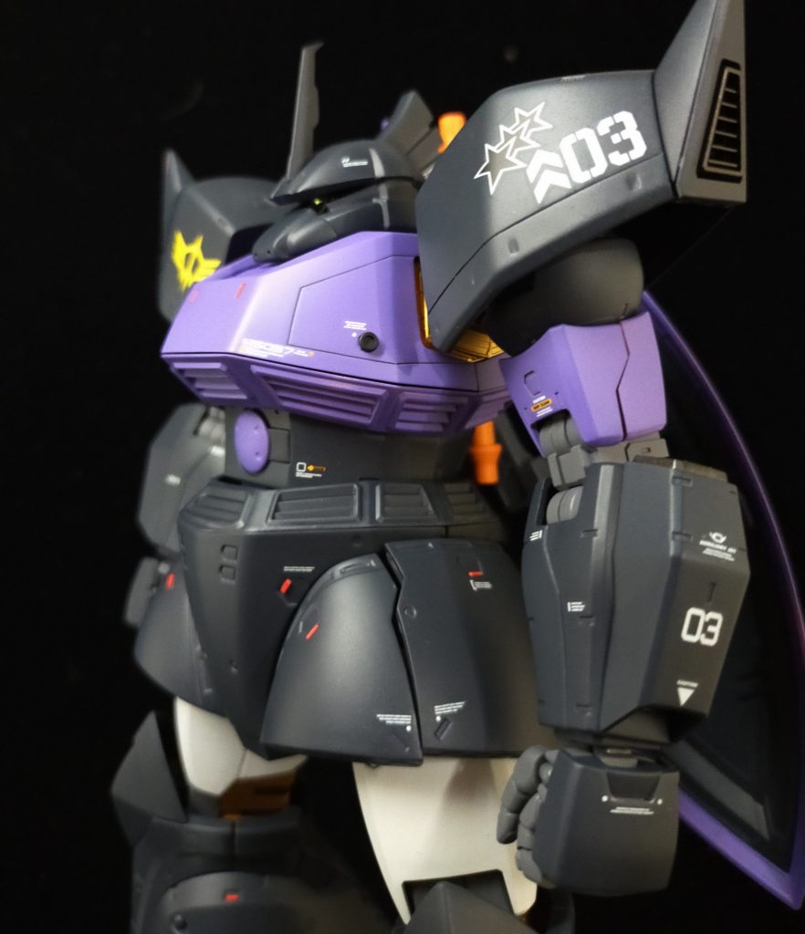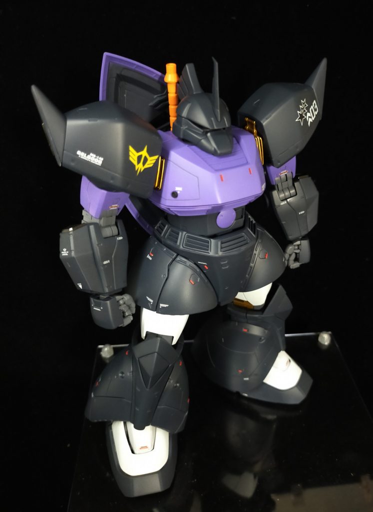 黒い三連星仕様で、各部にディティールアップを施し、全塗装マット仕上げで作製しました。