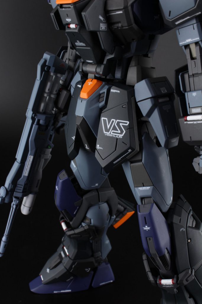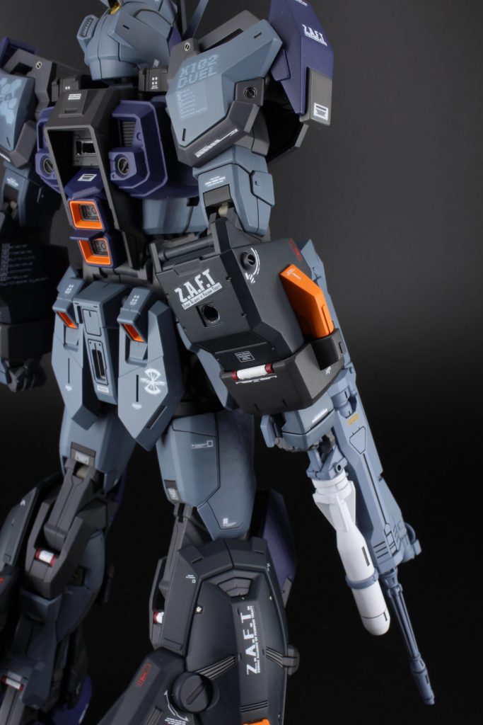 カラーリングはブルデュエル、シルエットは『RE:』で出てきた機体を参考にして制作しました。