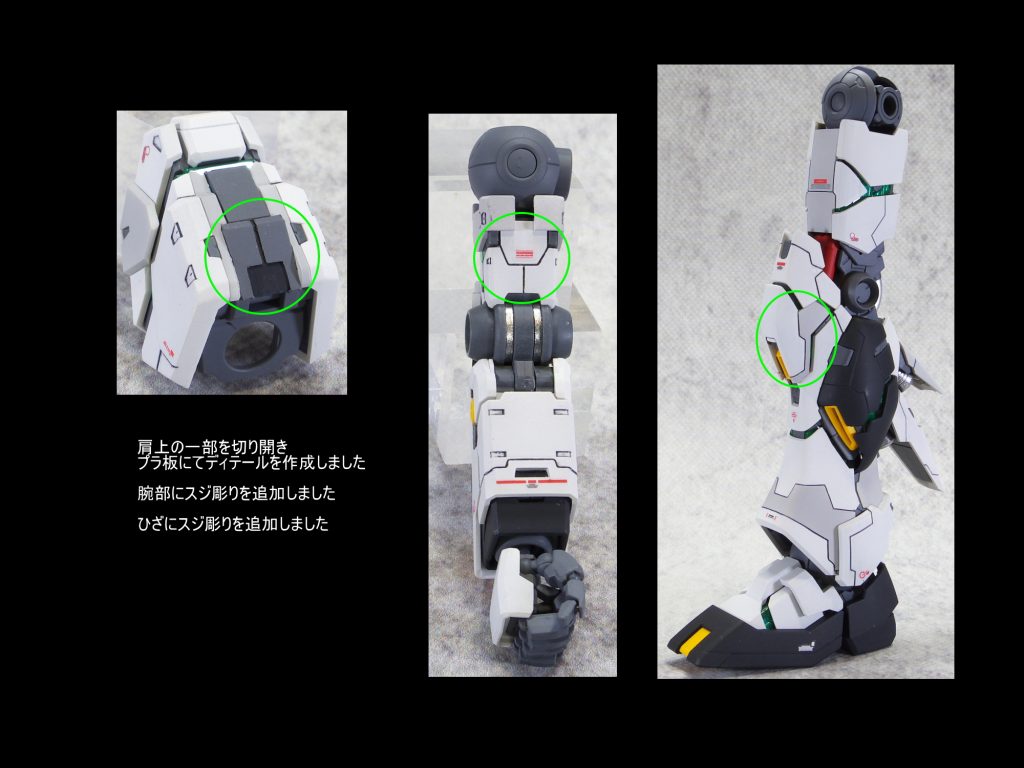 各所にスジボリにて情報量を追加して塗分け 太ももをパテにて幅…