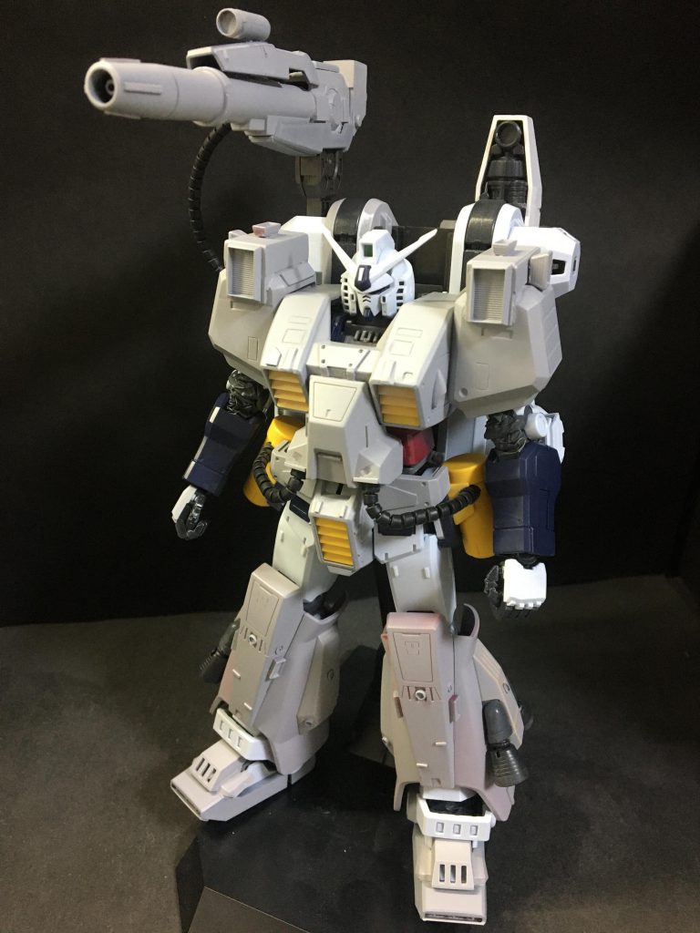 ショルダーキャノンはフルアーマーガンダムのを素体に砲身銃口はパーフェクトガンダムのキャノンを移植。ここもちょっとした改造で上手く纏まったので良かったです✌️