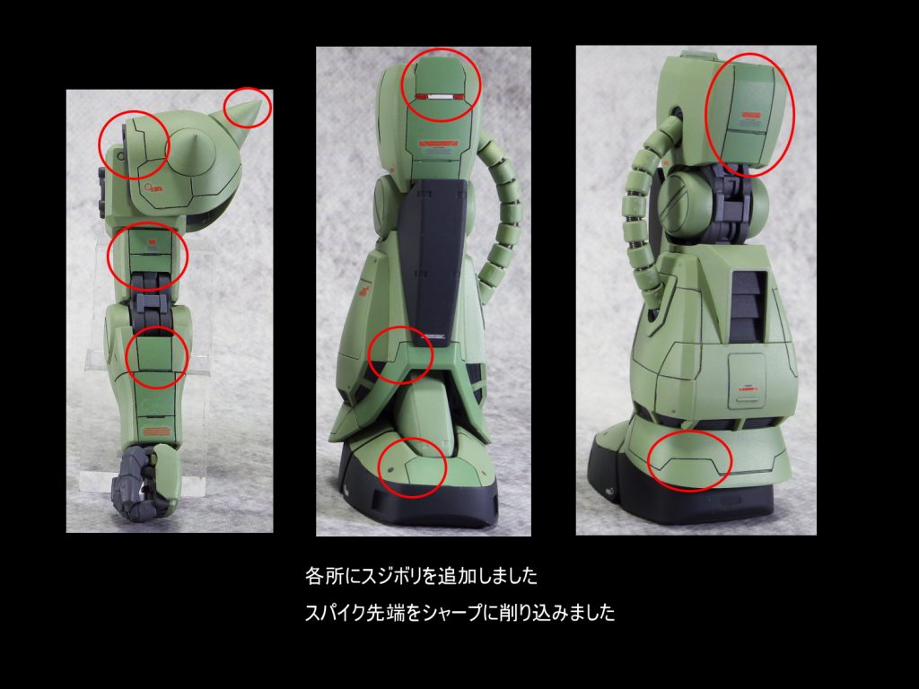 各所にスジボリにて情報量を追加して塗分け 太ももをパテにて幅…