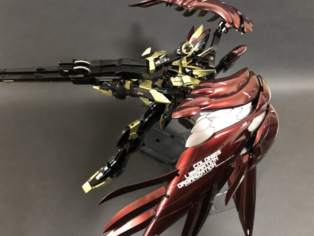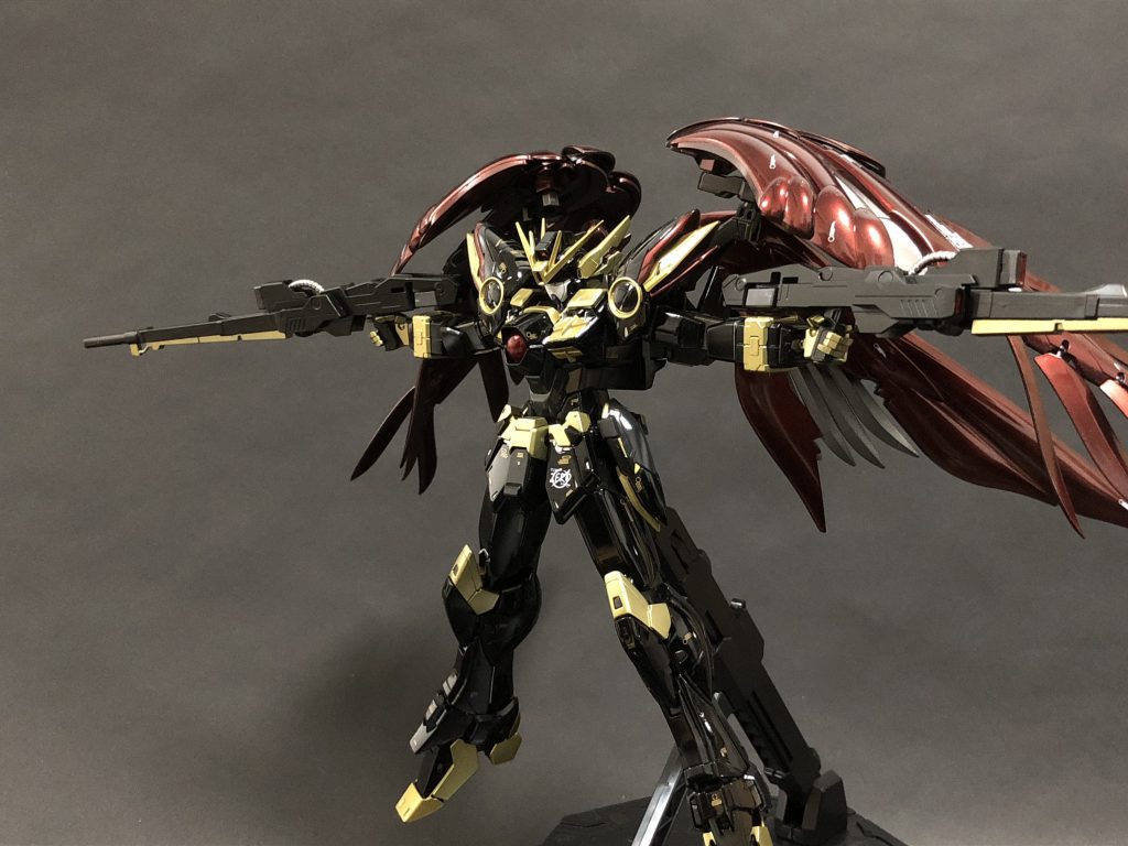 久々の投稿です。MGウィングガンダムゼロ(EW)Ver.Kaをコードギアスとコラボしたリベリオン仕様で作ってみました。今回は研ぎ出しもしたのでツヤツヤのピカピカに仕上げてます。