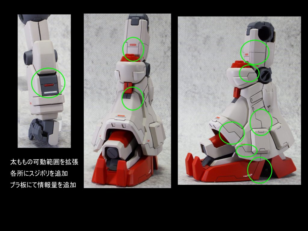 各所にスジボリにて情報量を追加して塗分け 太ももをパテにて幅…