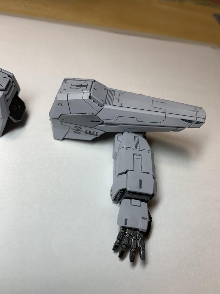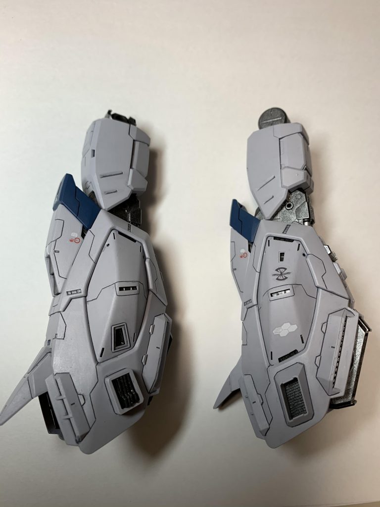 肩、足、腰、胴体等、全体的にディテール追加で筋彫りをしたり、プラ板貼ったり、プラ板から作成した新規パーツを組み込んだりしております。