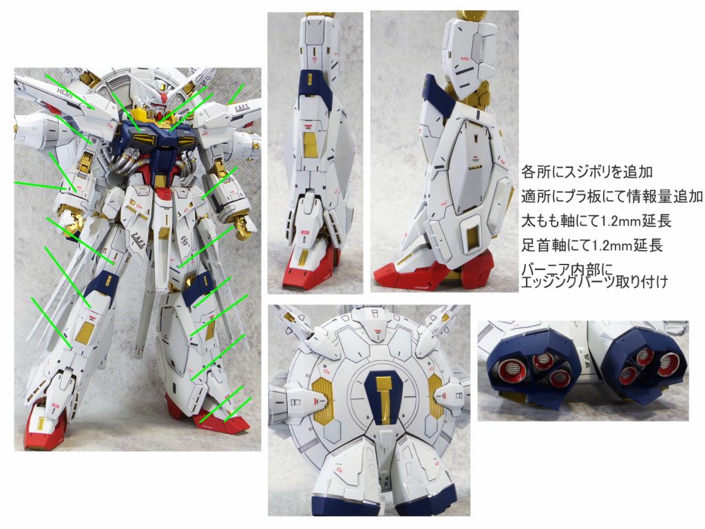 各所にスジボリにて情報量を追加して塗分け 太ももをパテにて幅…