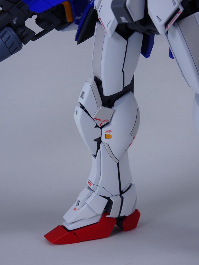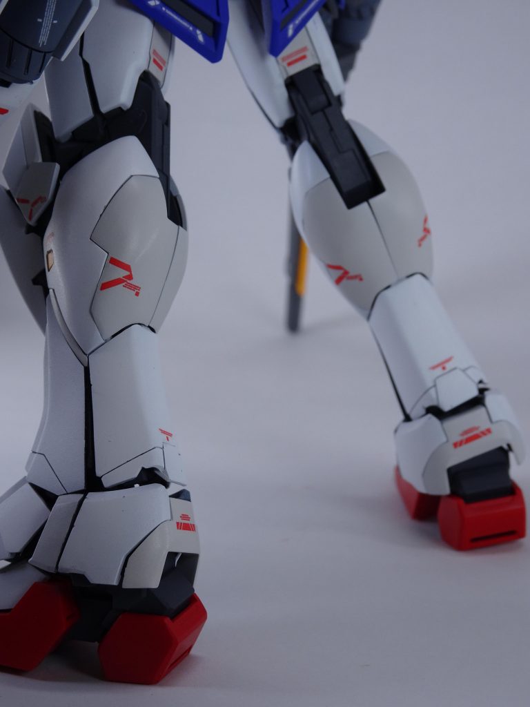 他の4機と情報量を合わせるため、ハイディテールな脚部を中心に、あえてディテール「ダウン」。RGと同程度のディテールまで減らしました。