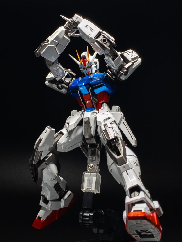 ストライク本体はプレバンのパーフェクトストライクに付属するチタニウムフィニッシュ版です。