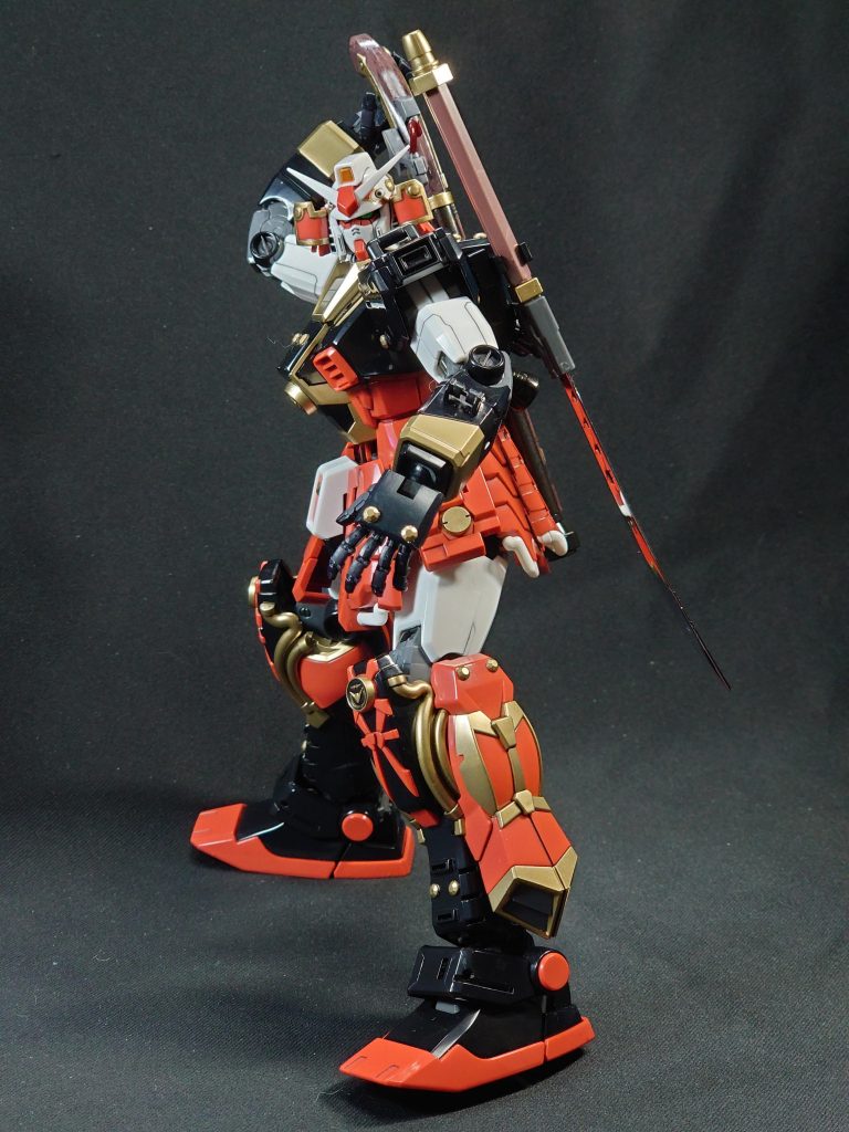作成中に思いついた仕様だったものを、完全版にしてみました。上半身は鎧を全て外しただけで、腰回りは変わりません。脚は拗ね当て(武者風の言い方)のみ残し外し、ふくらはぎ外側の推進器を外し内側を外に回してます。脚装甲はほぼ無い軽量特化型。