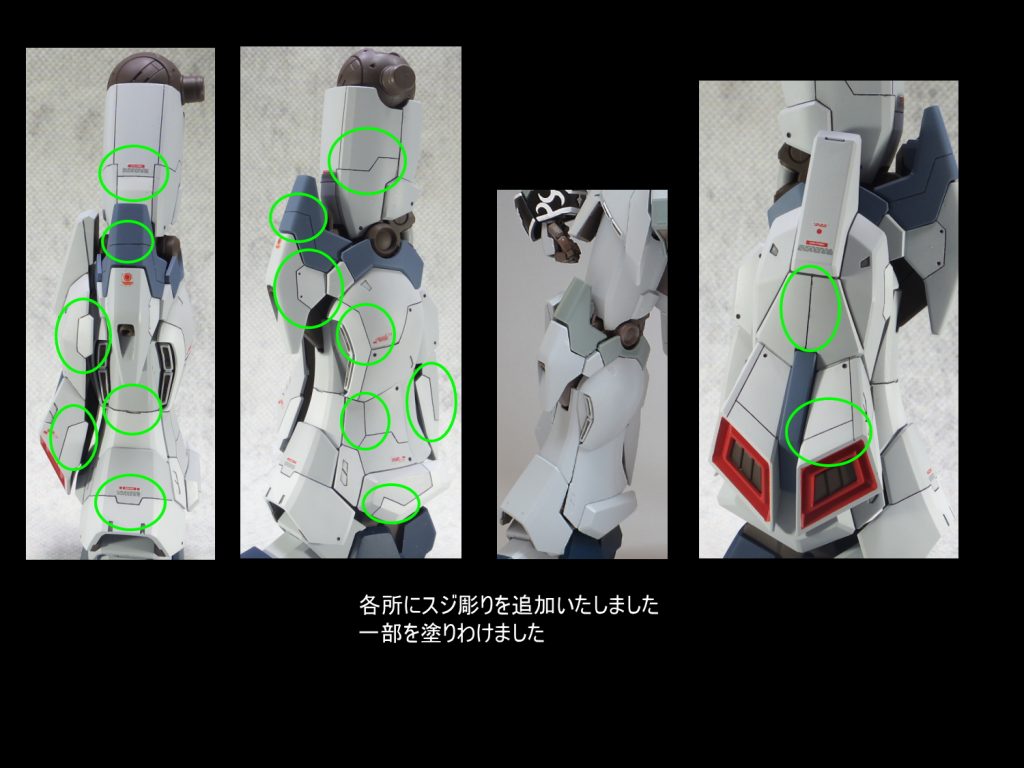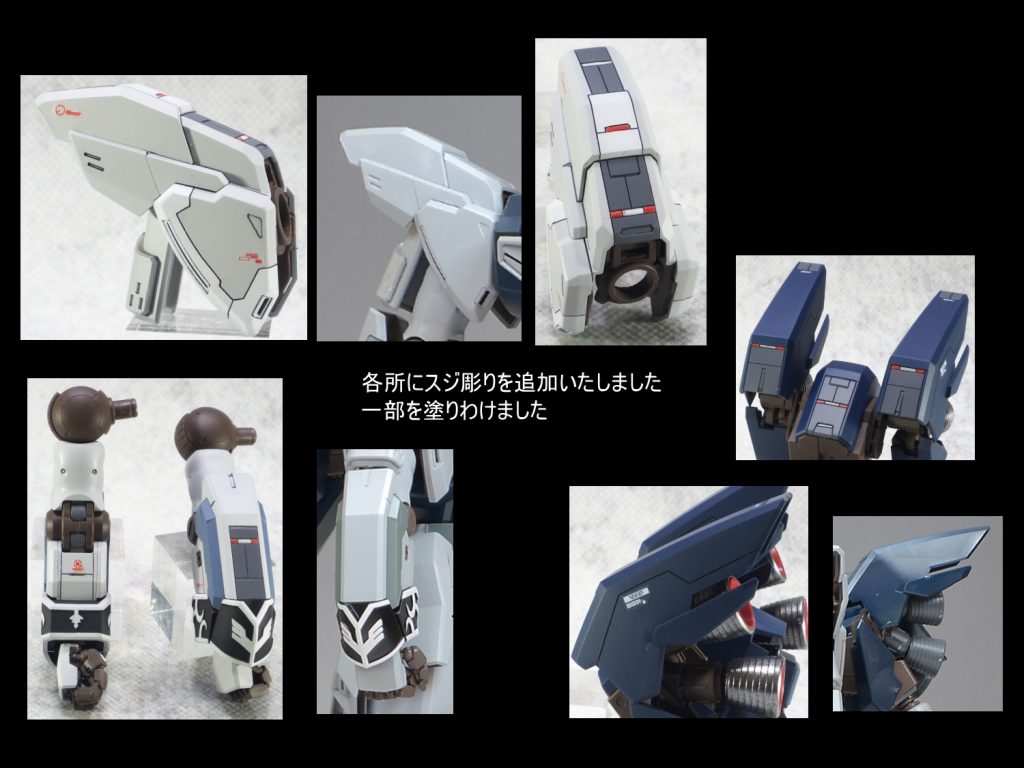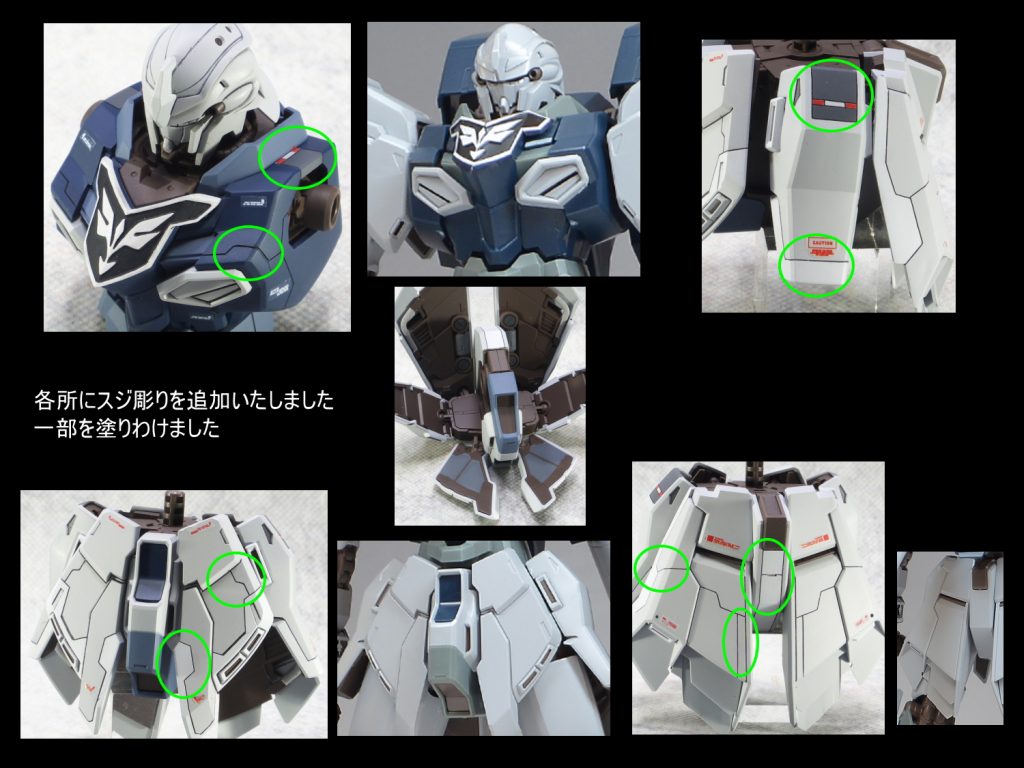 各所にスジボリにて情報量を追加して塗分け 太ももをパテにて幅…