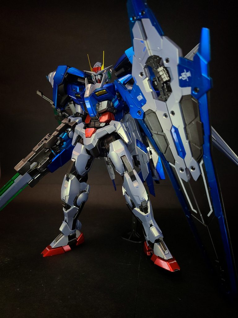![ライザーソード -トランザムを起動し、ライザーシステムを作動させることで使用可能となる特大ビームサーベル。使用時には、両肩のバインダーとGNソードII2基を機体前方に向けるなどの発動形態をとる必要がある。また、システムにはオーライザー側のコクピットからの微細なジェネレーター調整も必要としている[92]。一方で、オーライザー側での調整が必要なのはあくまで最大出力時のみであり、それ以外ではダブルオー本体側から自動制御されるとした資料も存在する[93]。作中ではGNフィールドを展開したエンプラスを両断したうえで、はるか彼方に位置するメメントモリの強固な装甲を切り裂く場面もみられた](https://gumpla.jp/wp-content/uploads/2021/11/21-11-29-18-52-35-430_photo-768x1024.jpg)