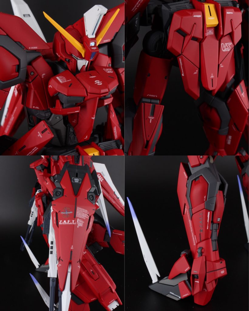 サイドアーマーに追加したウイングはZガンダムのものを流用し、プラ板やジャンクパーツで接続、稼働出来るようにスクラッチしました。