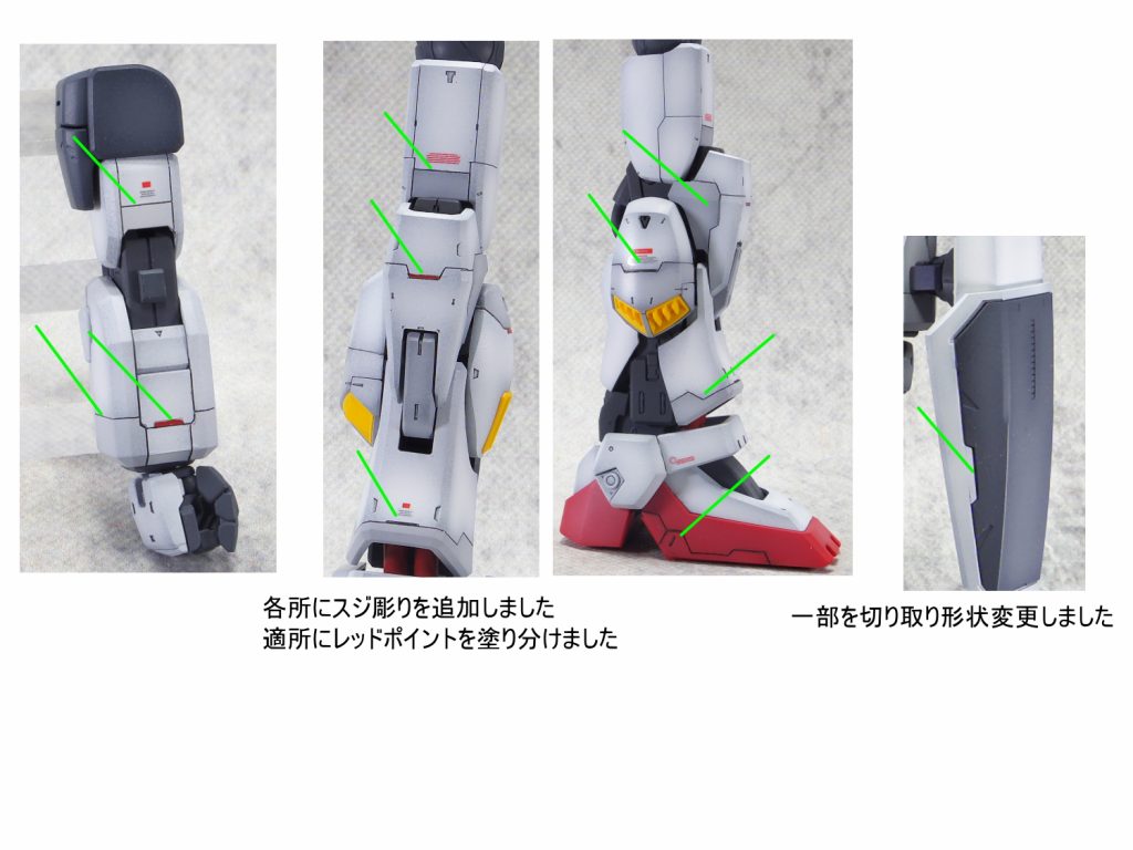 各所にスジボリにて情報量を追加して塗分け 太ももをパテにて幅…